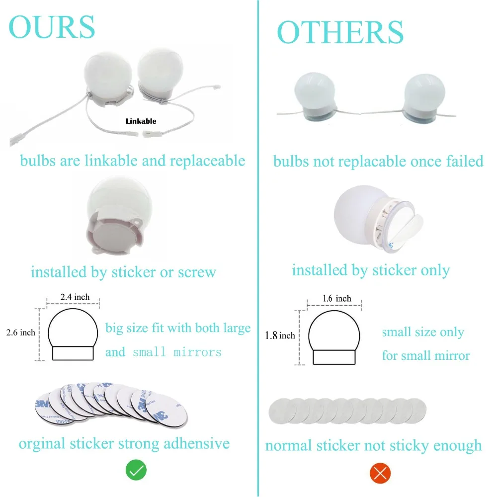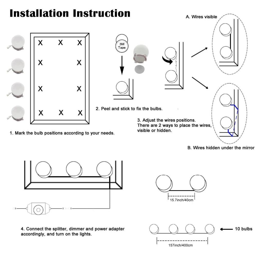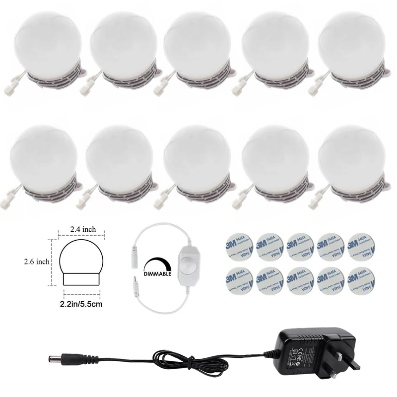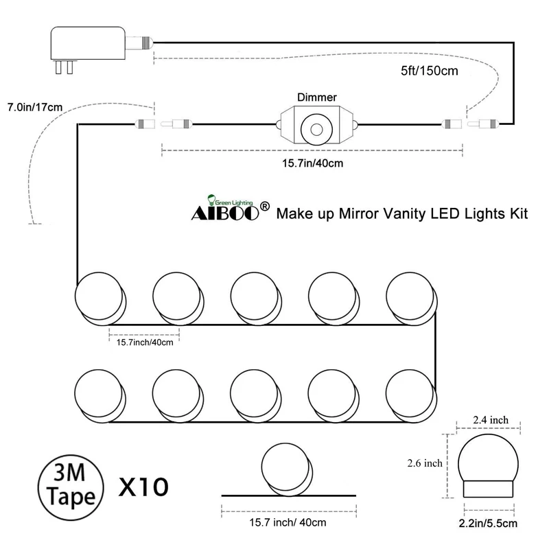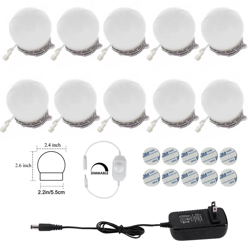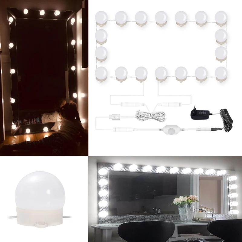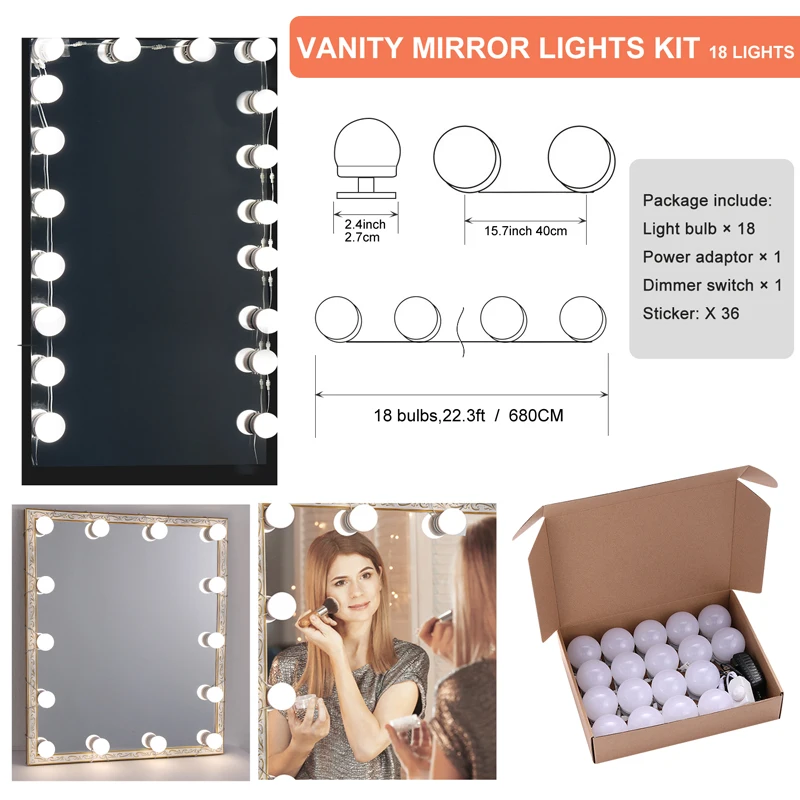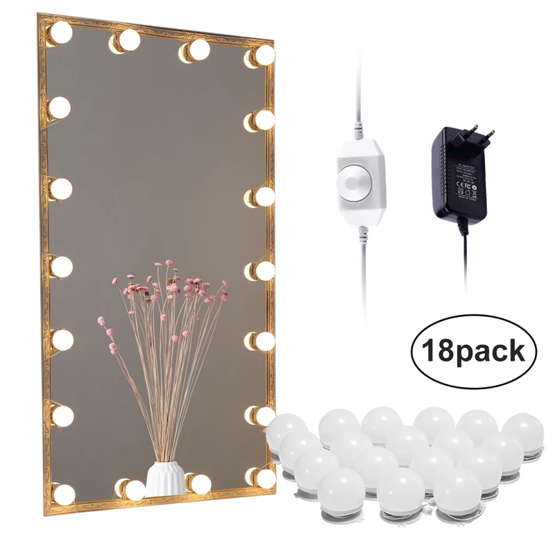 Комплект светодиодных светильников AIBOO для зеркала, Светильники для макияжа в голливудском стиле, 1018 лампочек для ванной комнаты, стены, туалетного столика с регулируемой яркостью и штепсельной вилкой