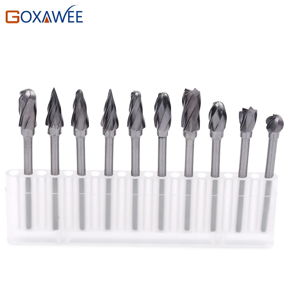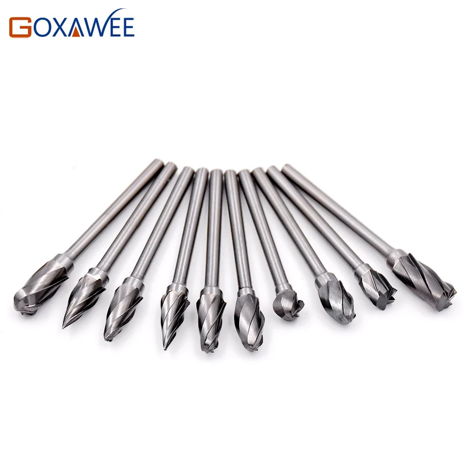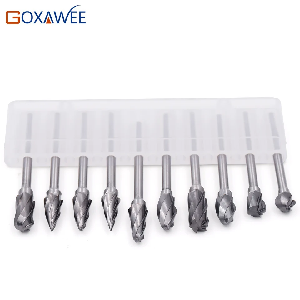 GOXAWEE 10 шт. набор роторных файлов из карбида вольфрама 3x6 мм грубая зубчатая однорезанная деревянная роторная фреза для Dremel