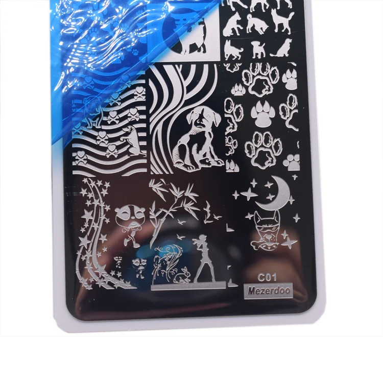 Mezerdoo милая собака прямоугольный, для нейл-арта шаблон штампа милый щенок Любовь Сердце DIY штамповки изображения пластины Маникюр штамп наборы C01