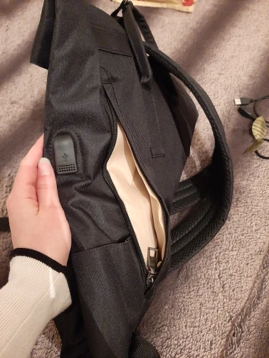 Очень вместительный рюкзак. Бери прям куда хочешь. в подарок положили 2 пары резинок и USB, который можно вставить в специальный кармашек, чтобы не лезть в сумку, а просто сбоку подсоединить. За такую цену очень удачный, ниток лишних нет и запах как от обычной сумки (если когда-то заходили в магазин с рюкзаками, то точно такой-же). Довольна покупкой! На фото видны дополнительные кармашек и отделение для USB.