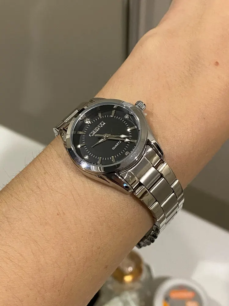 доставка 21 день до Краснодарского края. Упакованные надёжно. Достались за 581 руб. На мою ручонку пришлось убрать 4 звена, по 2 с каждой стороны. На втором фото видно, что большие. Сами часы классные, стильные, качественно выполнены. Это мои вторые от этого продавца. Первые года 2 приносила. Мне именно с чёрным циферблатом нравятся. Но остановились. А так как новые в идеальном состоянии. Заказала снова точно такие. Продавцу моя благодарность