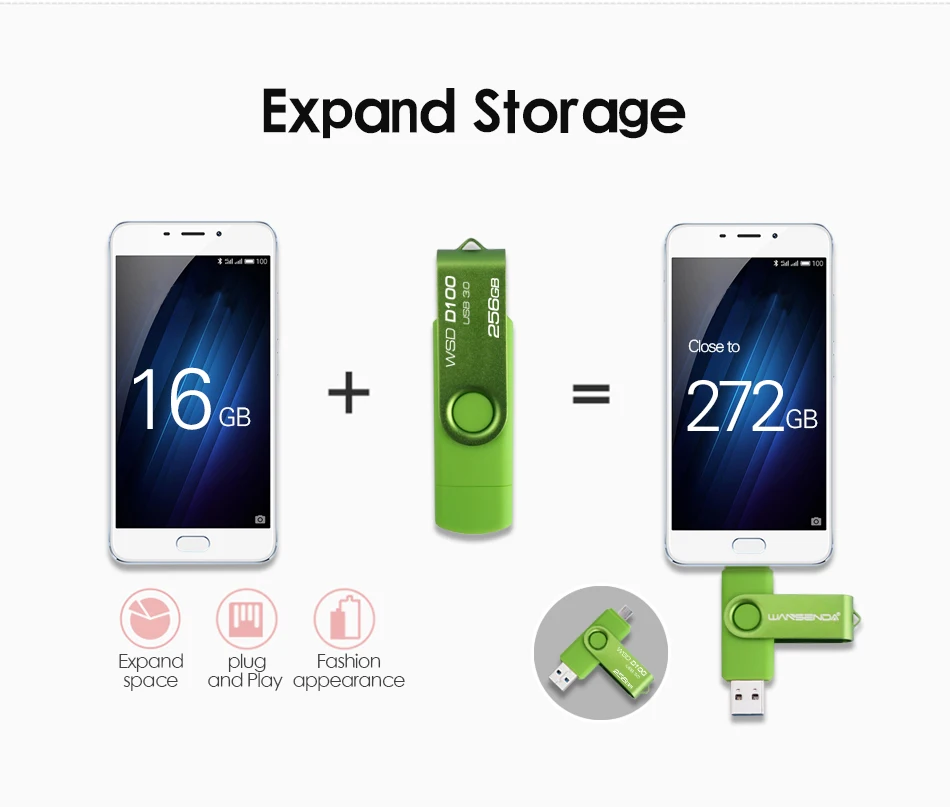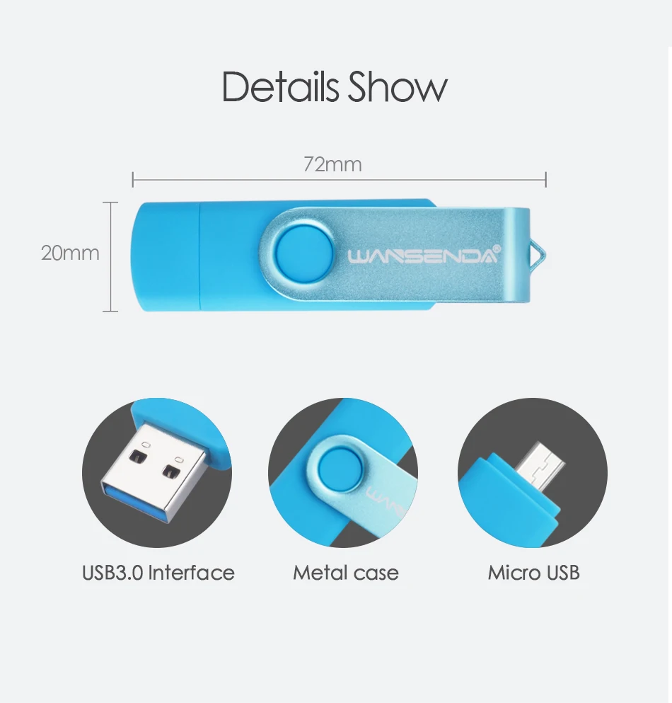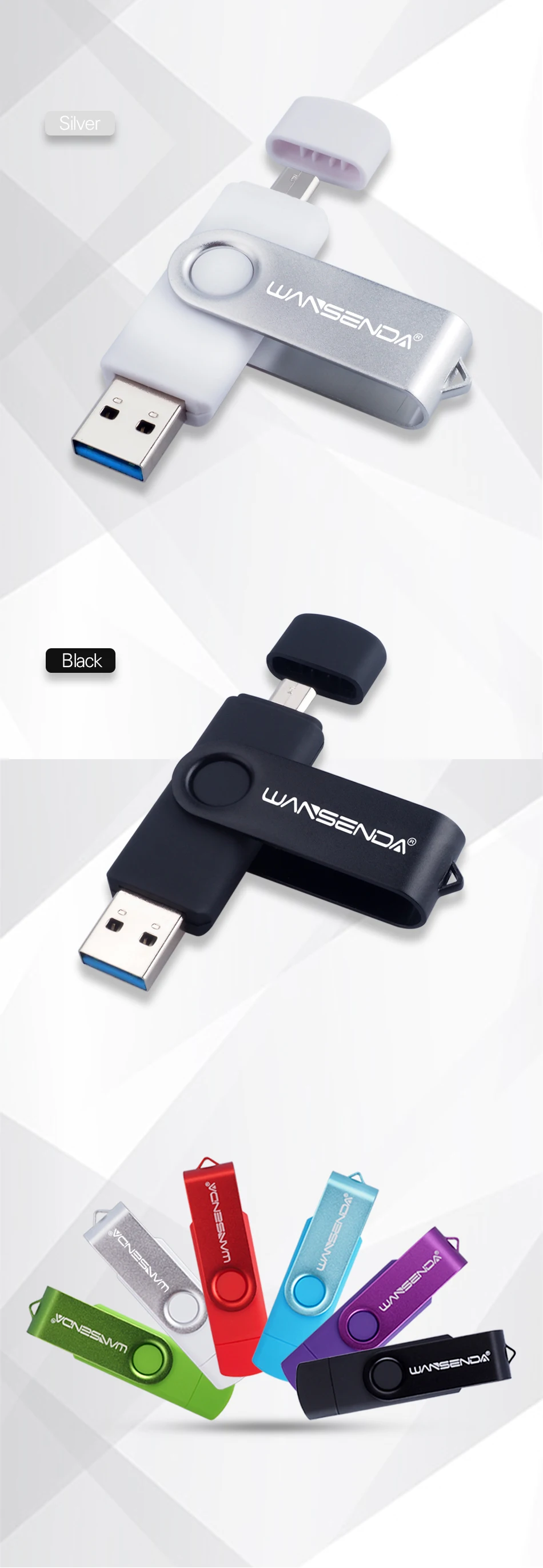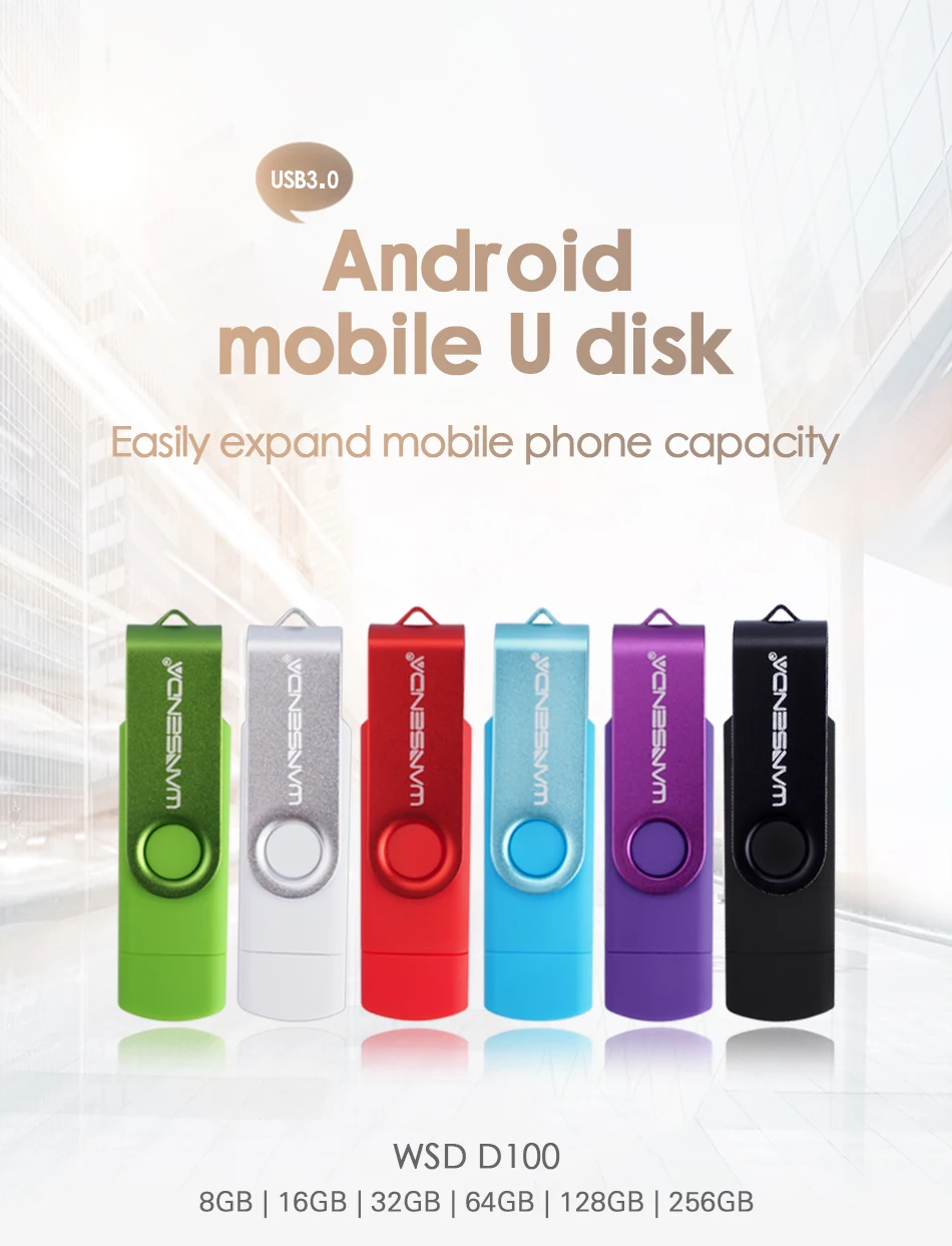 WANSENDA USB 3.0 USB Flash Drive OTG Pen Drive 8GB 16GB 32GB 64GB 256GB Pendrive USB 3.0 128GB Micro Memory Stick Flash Drive