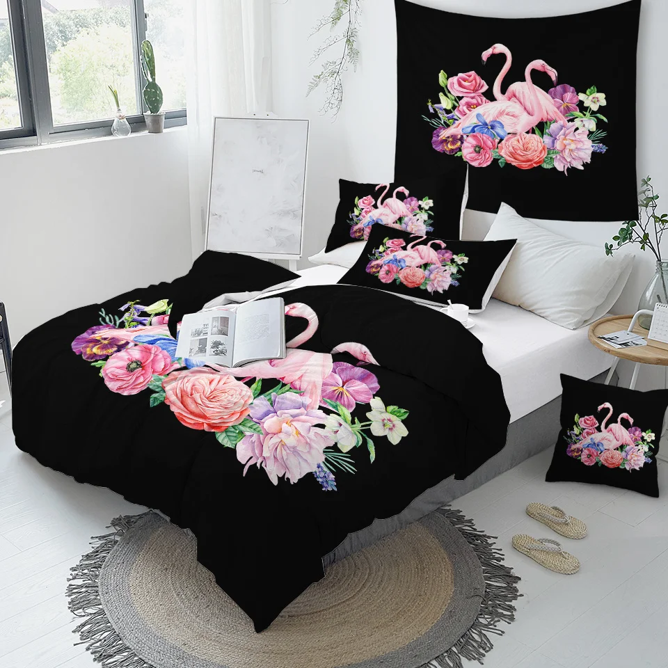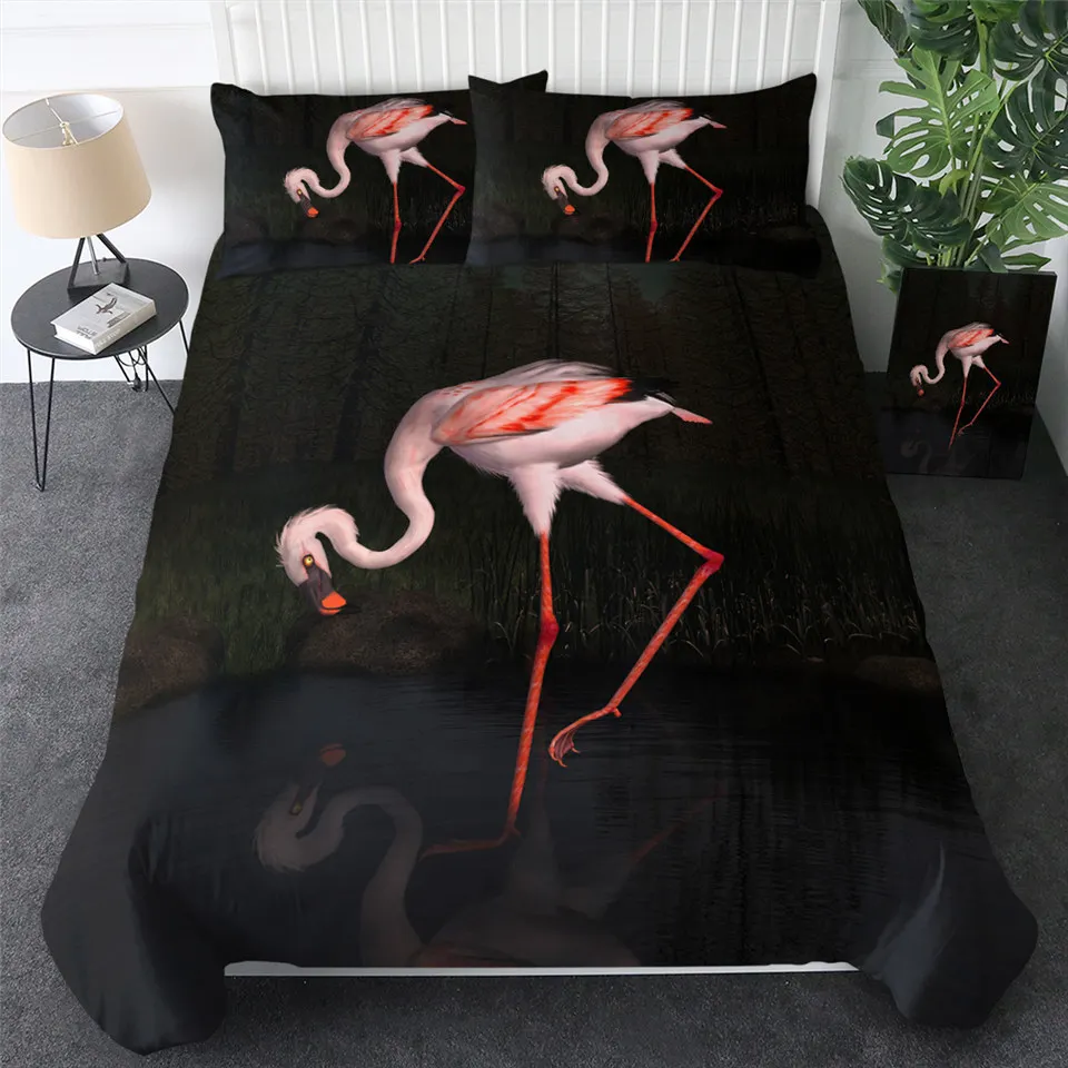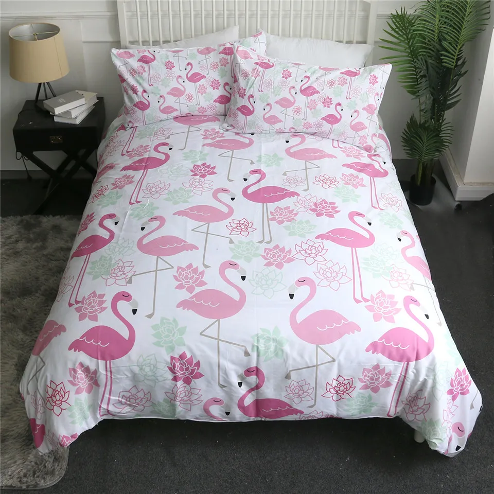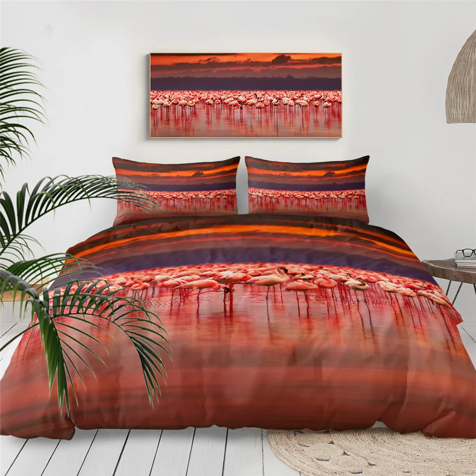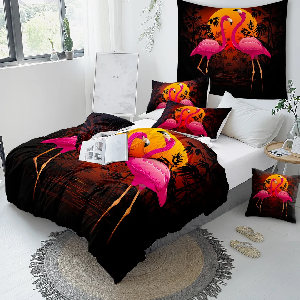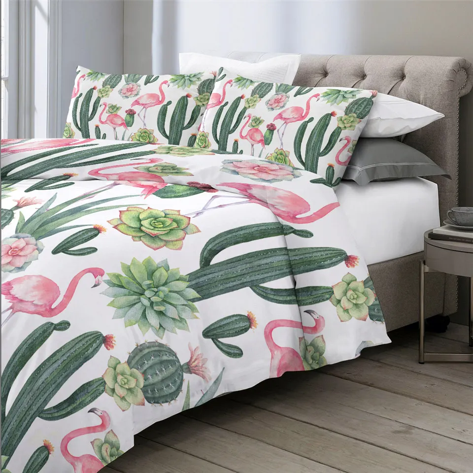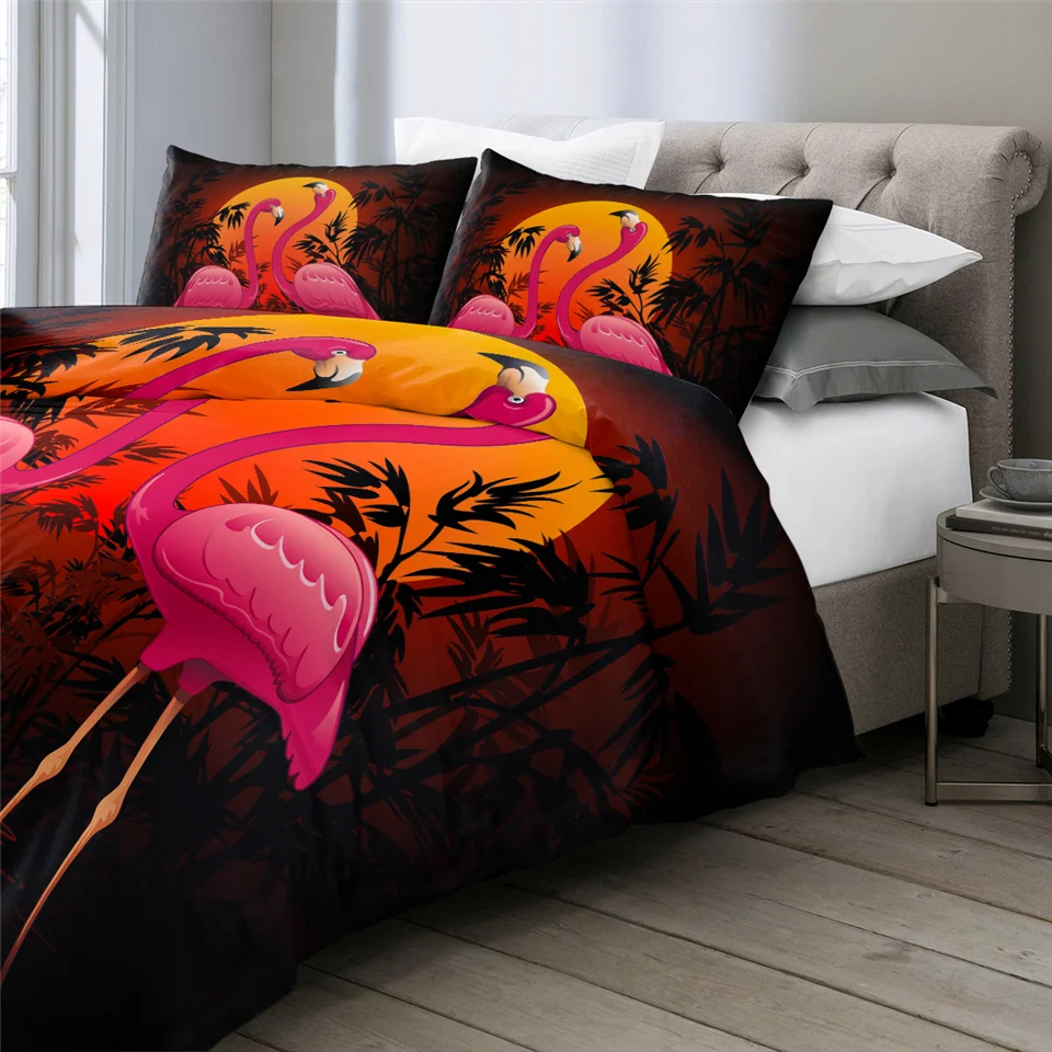 Комплект постельного белья BeddingOutlet с изображением фламинго, тропических растений, пододеяльник, Комплект постельного белья для дома, с цветочным принтом, розового и зеленого цветов, 3 шт.