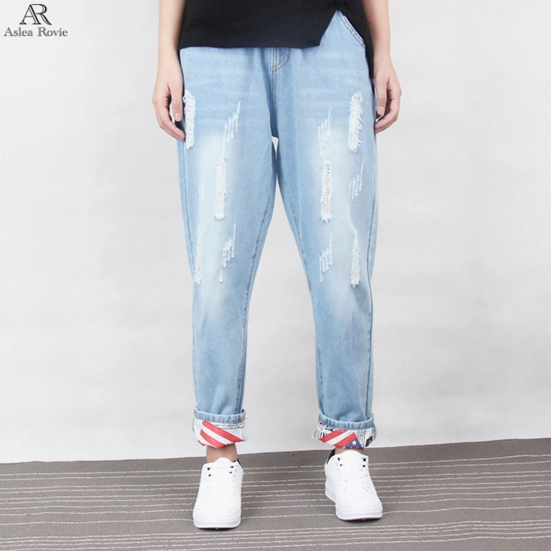 2017 рваные джинсы женские хлопок шаровары Плюс Размер пят джинсовые штаны 5XL