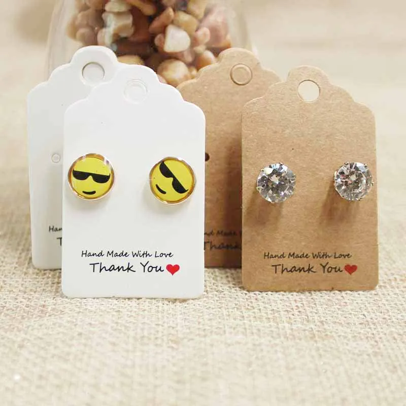 5*3 см крафтбелый сделай сам, ручная работа с любовью, ювелирный дисплей и посылка, висячая карта, милые серьги-гвоздики, бирка, 100 шт. в лоте
