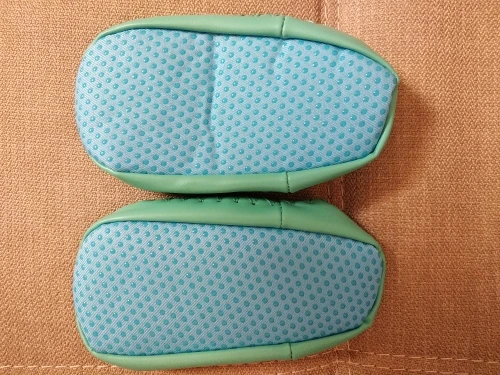 Симпатичные ботиночки, для первых шагов малыша в ходунках самое то. Цвет немного отличается, бирюзовый по цвету как приглушенный, менее яркий, чем на фото. Качество меня устраивает. Нет торчащих ниток или постороннего запаха. Пришёл в индивидуальном пакетике за месяц с момента заказа. Размер 12 мес подошёл на ножку малыша 8-ми месяцев.
