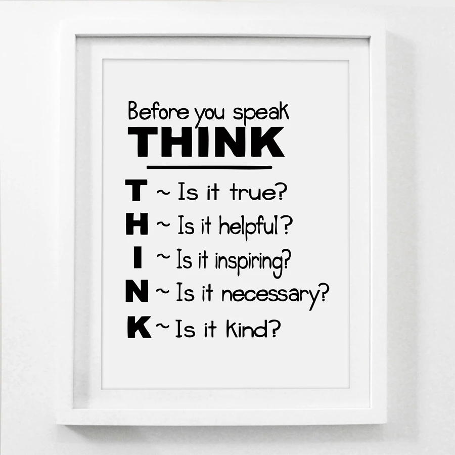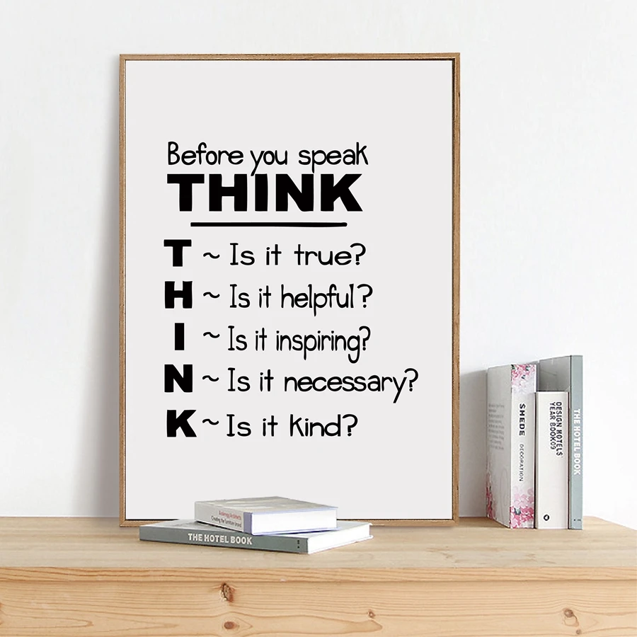 Мотивационные с принтом с цитатой стены искусства плакат Декор, подумайте, прежде чем вы говорите картина с цитатой школьная классная комната, для стен арт Декор