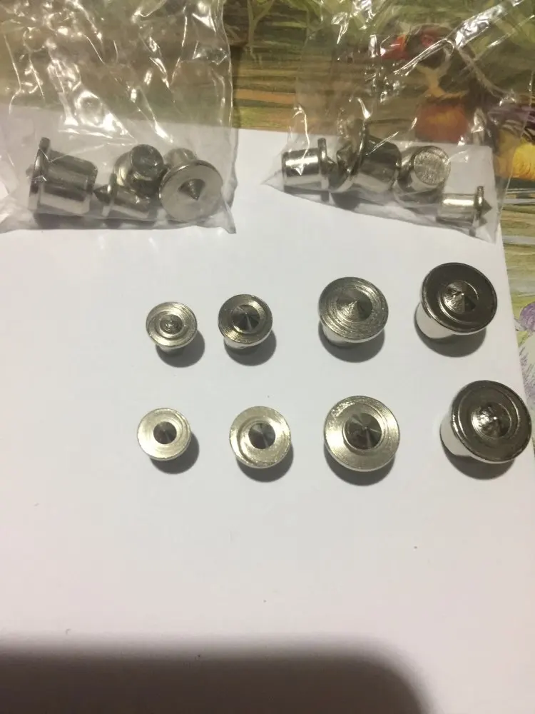 Тяжёлые цельнолитые отмечалки. Диаметры соответствуют. Ехали долго. По штуке каждого размера в пакетике. Судя по весу - люминь.