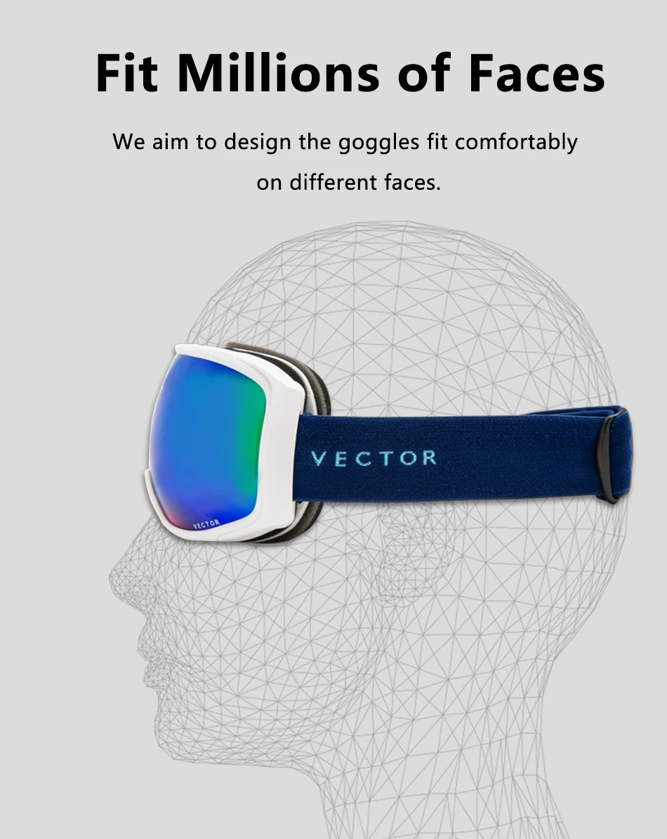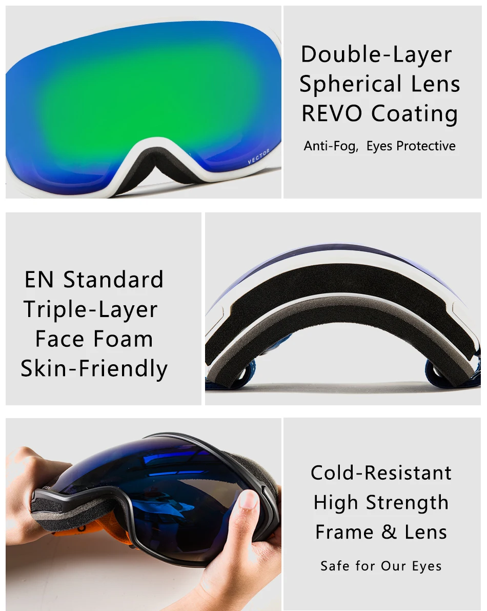 Лыжные очки VECTOR, мужские, женские, мужские, противотуманные, UV400, очки для катания на лыжах и сноуборде, сферическая большая маска, очки для сноуборда