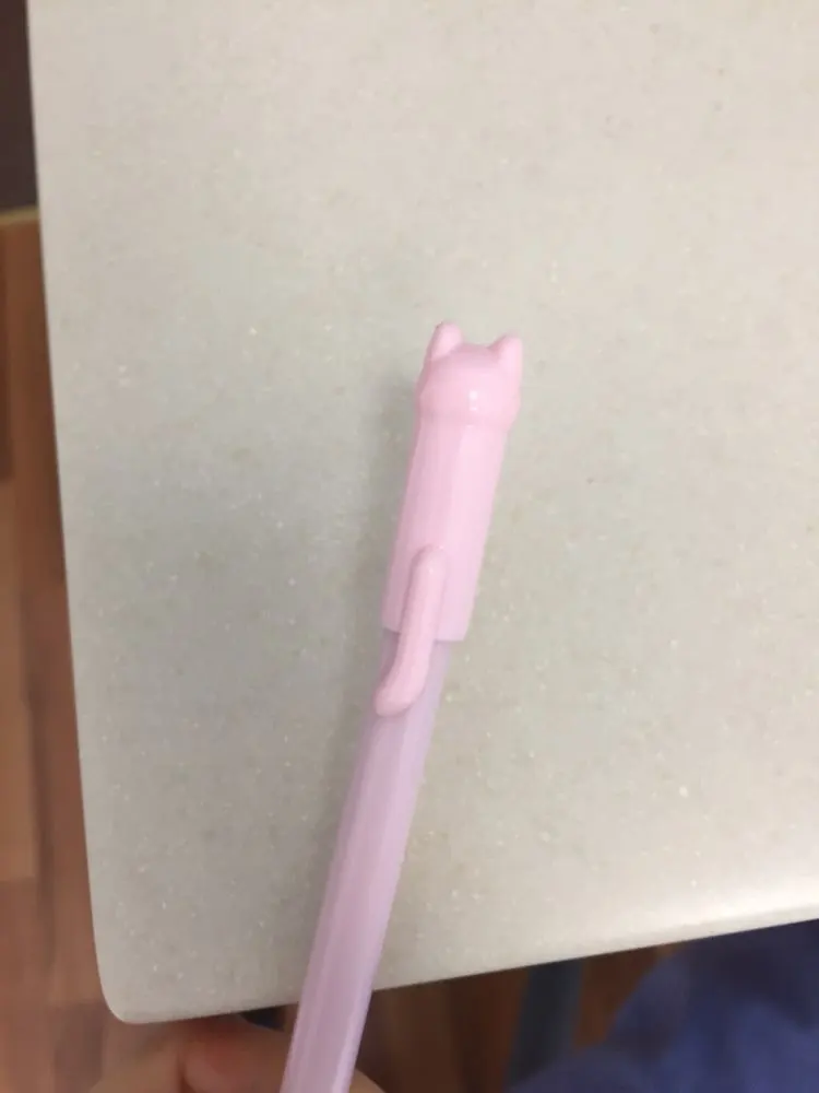 Очень милая ручка! На колпачке сзади есть миленький хвостик. Ручка хорошо пишет.