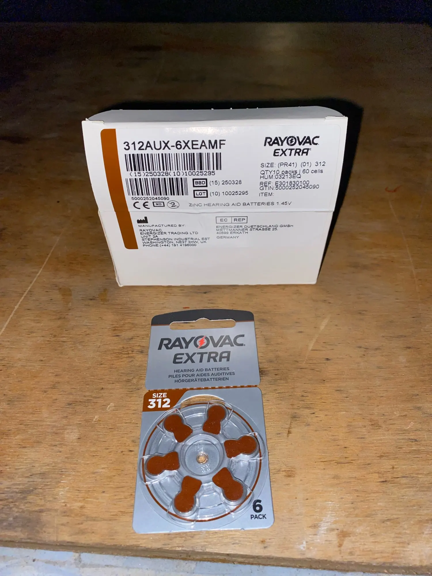 РазмерHearing Aid Batteries 312