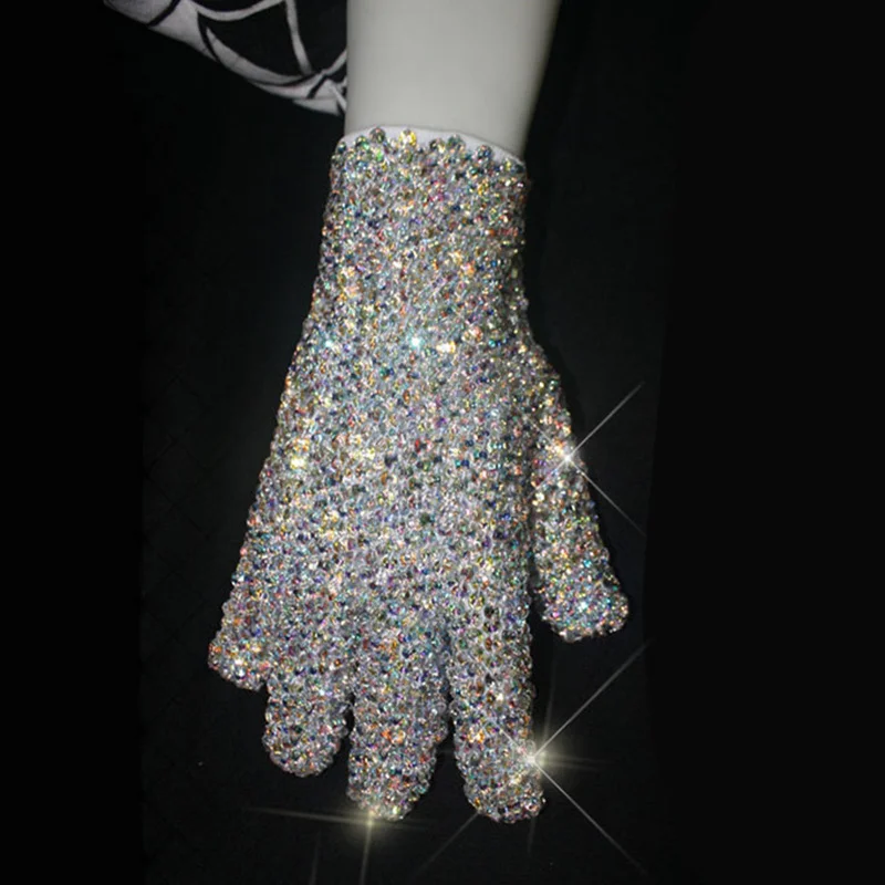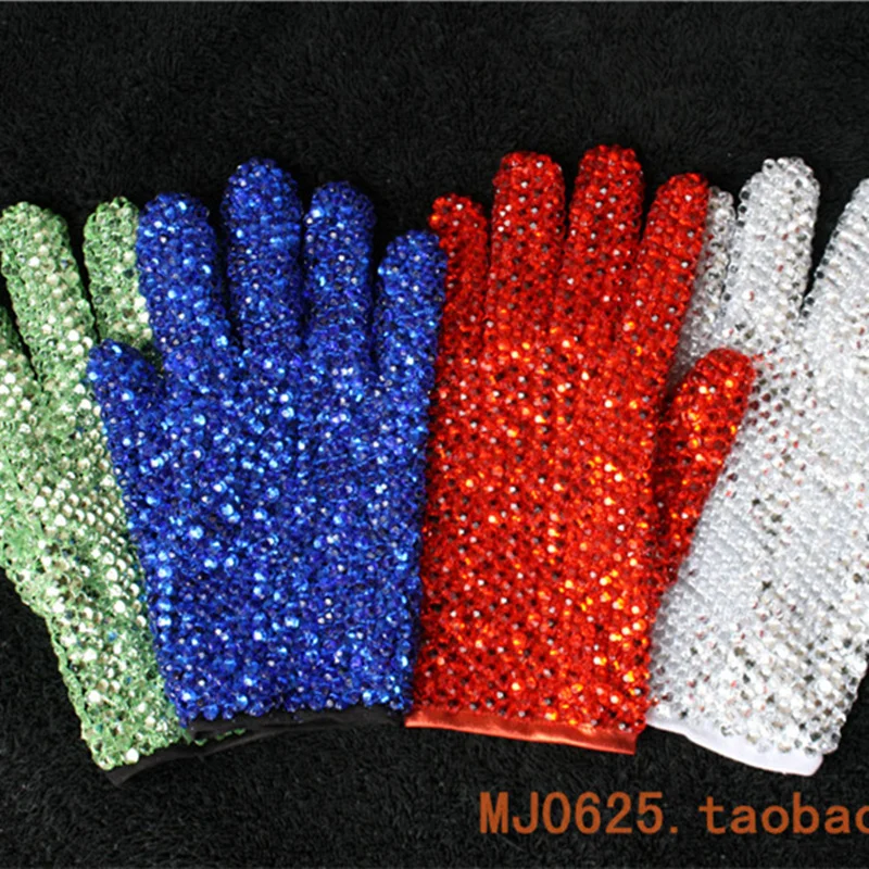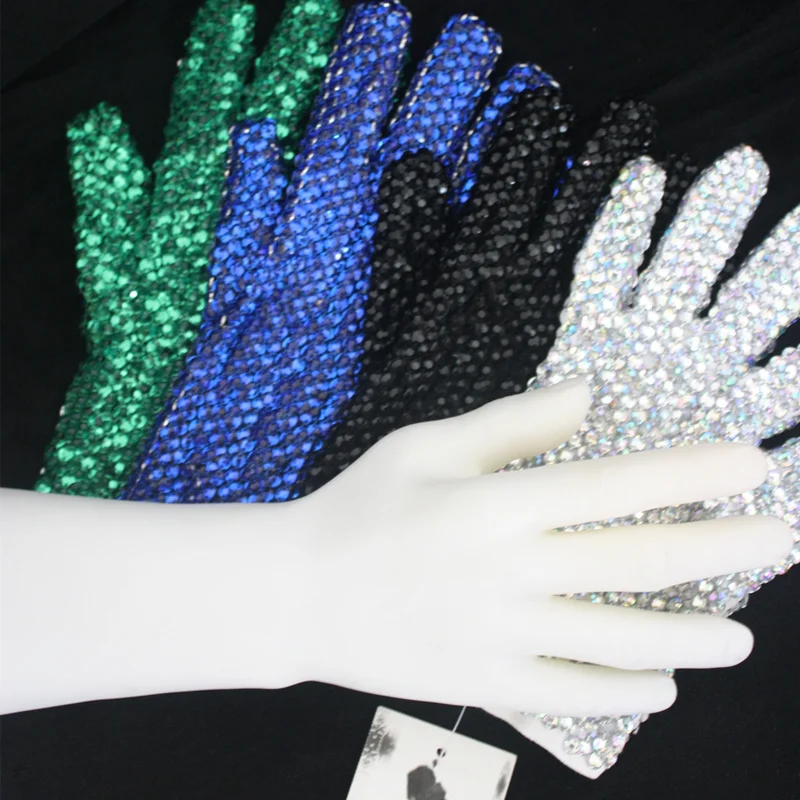 В памяти MJ Майкл Джексон красочные двусторонние Кристаллы Стразы ручная работа Коллекционная перчатка