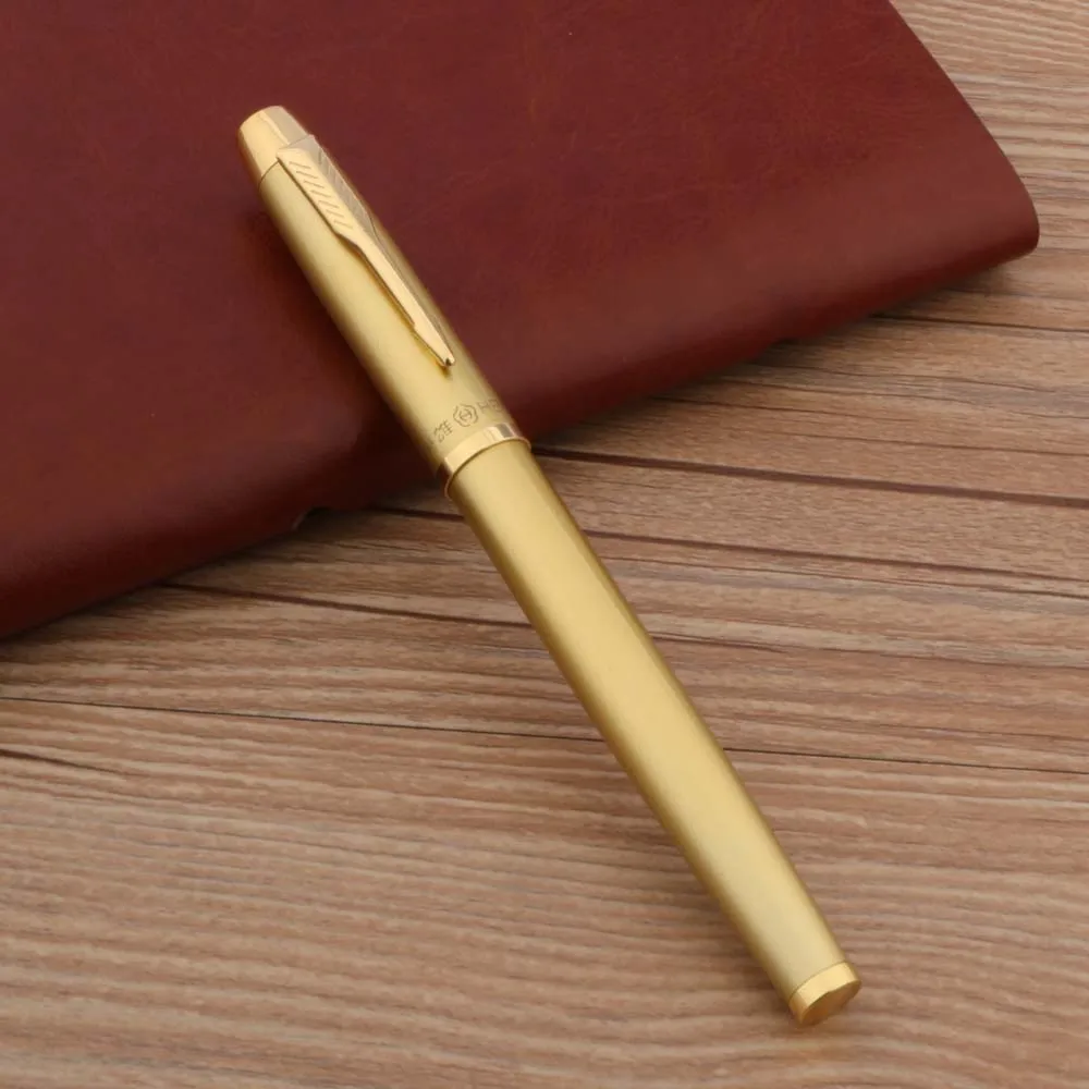 Ручка перьевая металлическая золотистая со стрелками, 8007
