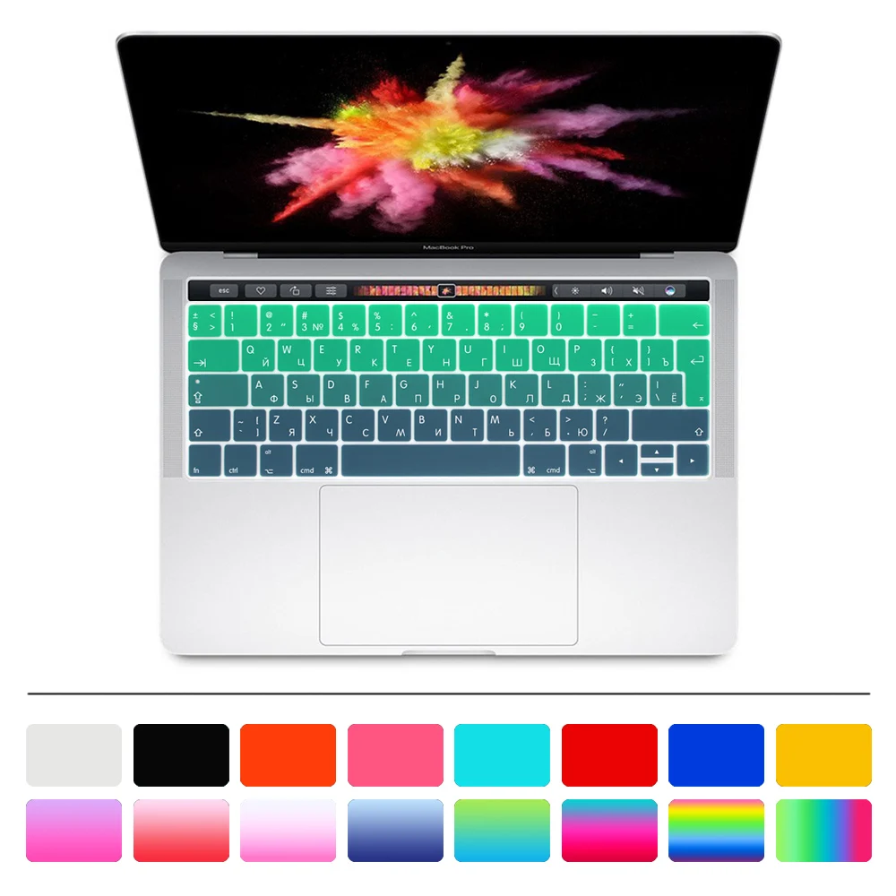 Чехол для клавиатуры HRH, радужная Силиконовая накладка на клавиатуру для Macbook New Pro 13, A1706, A1989, A2159, 15 дюймов, A1707, A1990 с сенсорной панелью