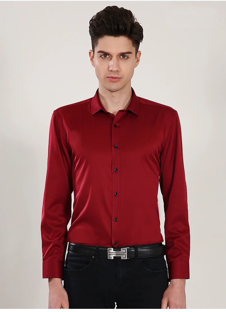 Мужская Однотонная рубашка из бамбукового волокна, Классическая эла...