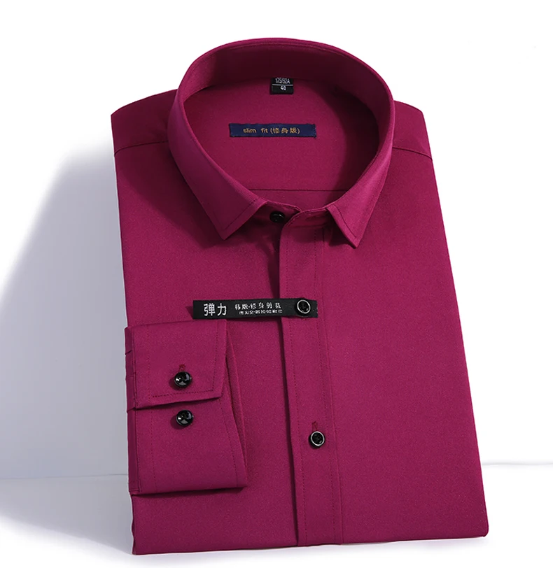 Мужская Однотонная рубашка с длинным рукавом, Классическая формальн...