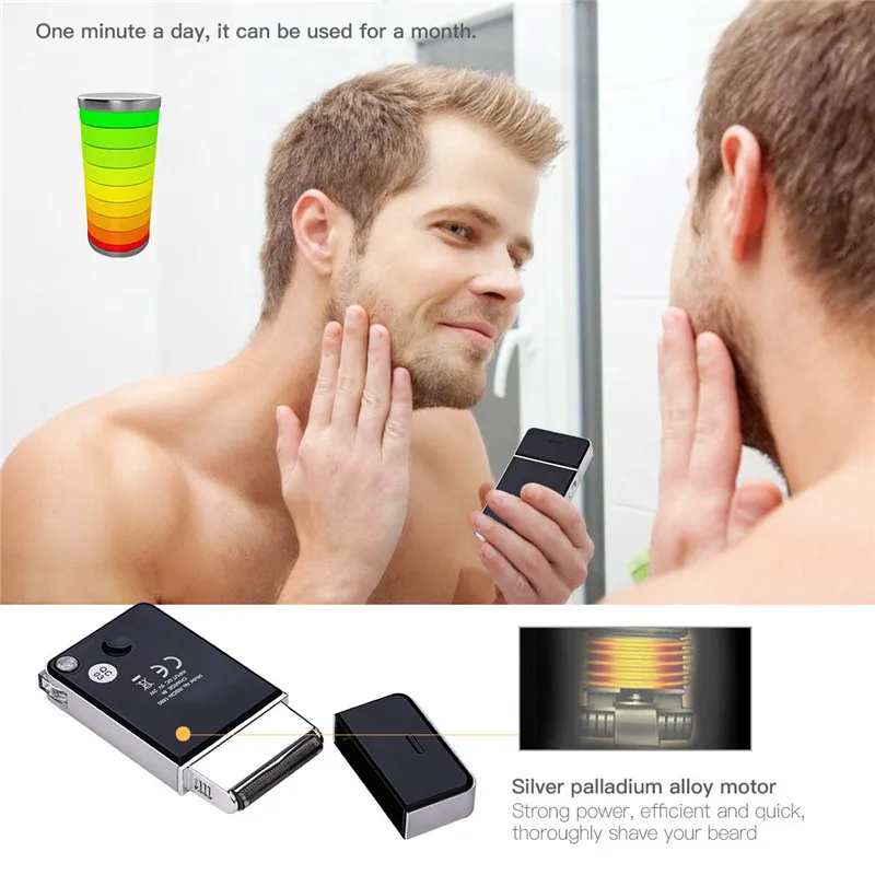 Перезаряжаемая дорожная электрическая тонкая Бритва для мужчин, карманная Расческа для бороды, размер с выдвижным триммером, Запасное лезвие для сетчатой бритвы