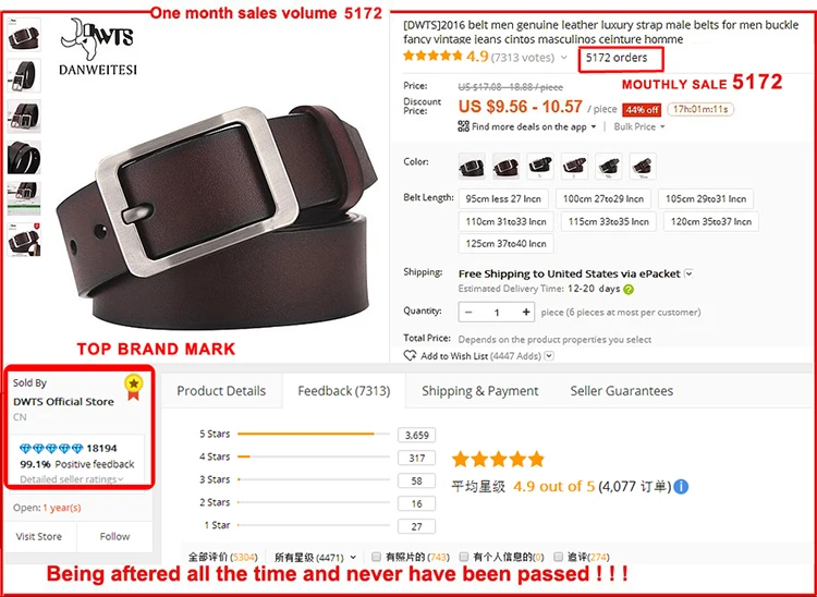 Заказ шел 56 дней до Сахалина. За такую долгую доставку надо благодарить сортировочный центр китайской стороны, который объединил несколько заказов в одну посылку. Посылка дошла до границы, потом вернулась опять на этот центр, где заказы отправили отдельными посылками. Трек номера отправлений узнал случайно. По ремню претензий нет. Заказываю третий раз. Качество отличное. Спасибо продавцу.