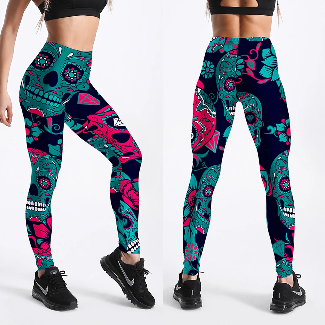 Леггинсы женские эластичные, из 12% спандекса, с принтом в виде мороженого, лошади, черепа