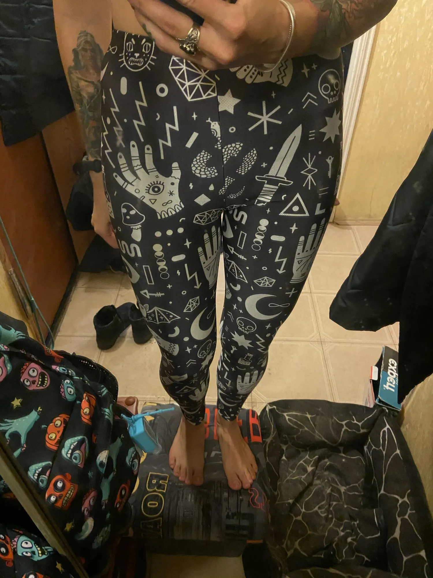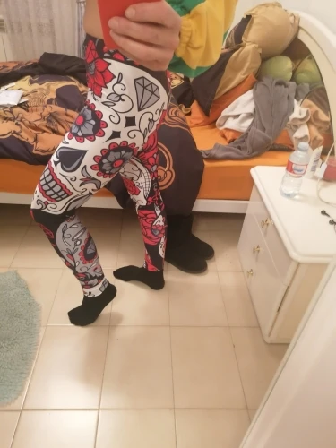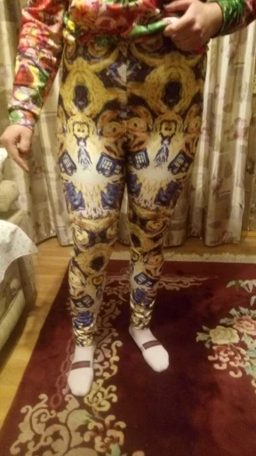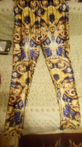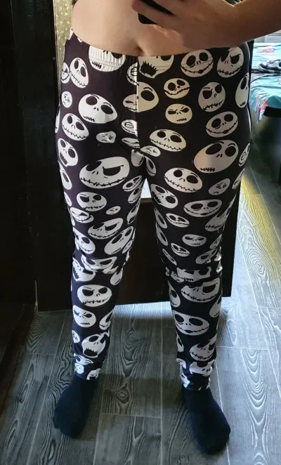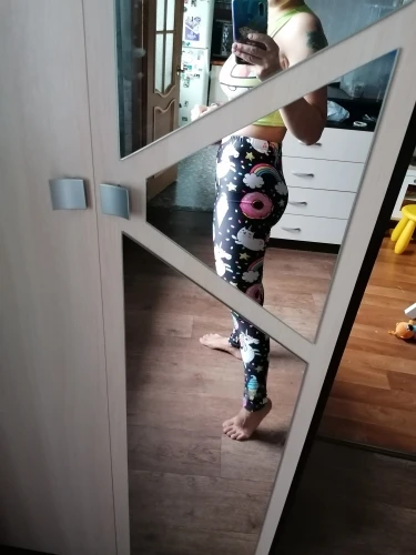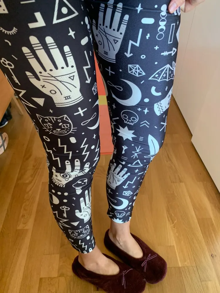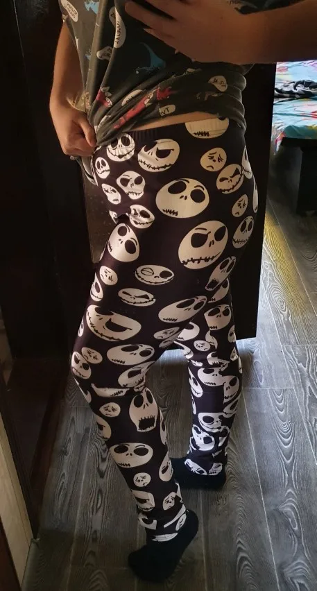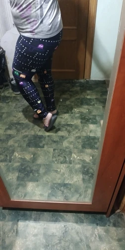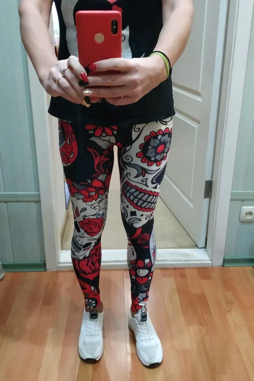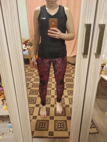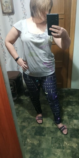 Принт хорошо пропечатан, но леггинсы немного тонковаты, так что лучше брать на размер больше, ношу 28-30, взяла L, в обтяг