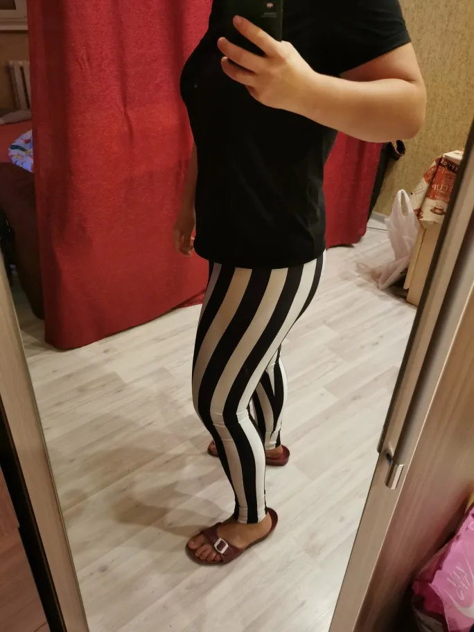 Хороший товар, плотная синтетическая ткань. В детстве носила леггинсы из такй же ткани на занятия аэробикой. Товар пришел быстро - всего за 10 дней. Рисунок специально выбирала такой, чтобы в случае нестыковки швов, это не было заметно. Качеством рисунка довольна. Размер ношу M, но здесь, отталкиваясь от размерного ряда, взяла S. В принципе, лучше было бы взять M, но и в этом размере чувствую себя комфортно.