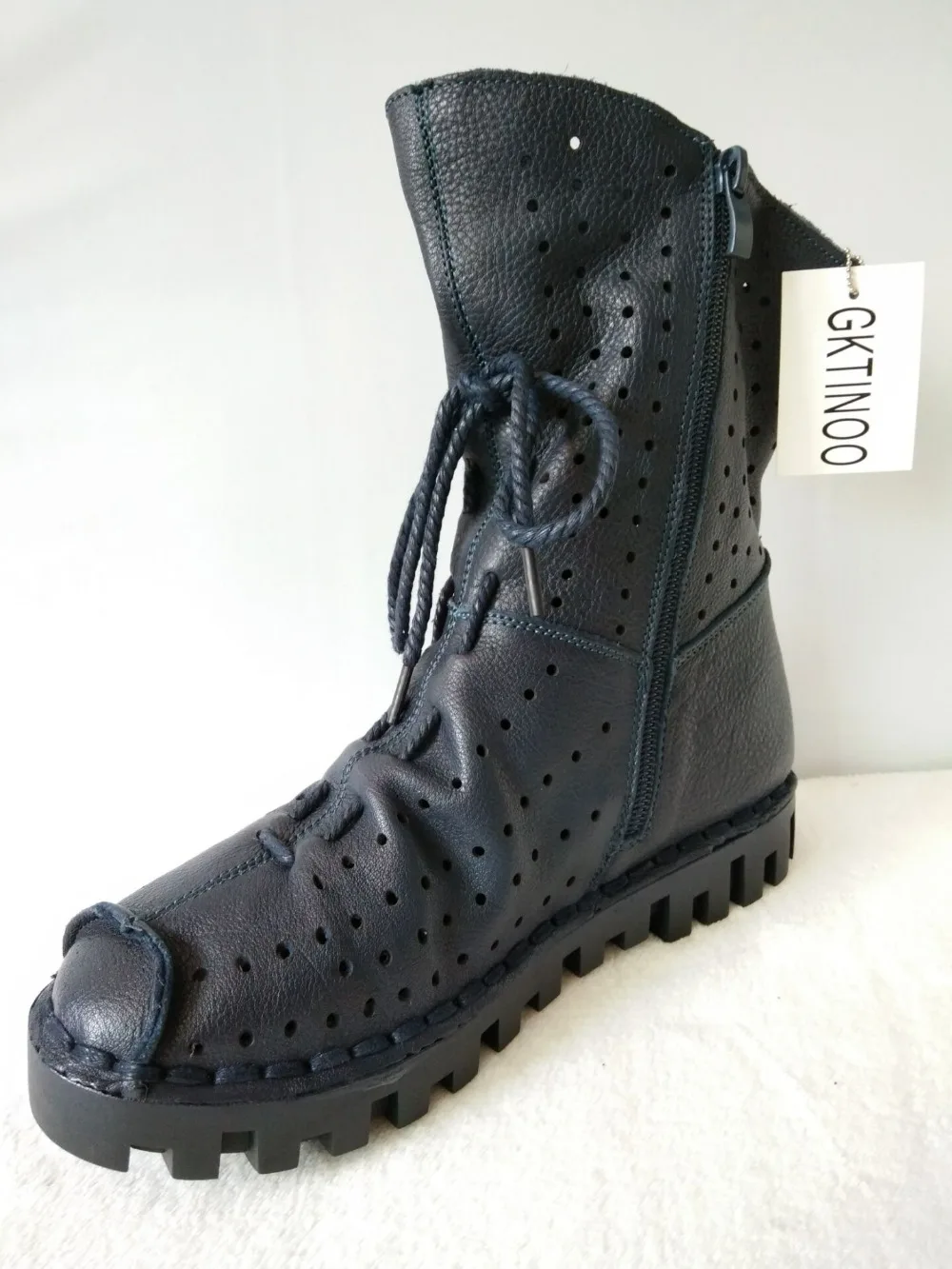 GKTINOO2022; Женская модная Винтажная обувь из натуральной кожи; Женские демисезонные ботильоны на платформе; Женские повседневные ботинки на шнуровке