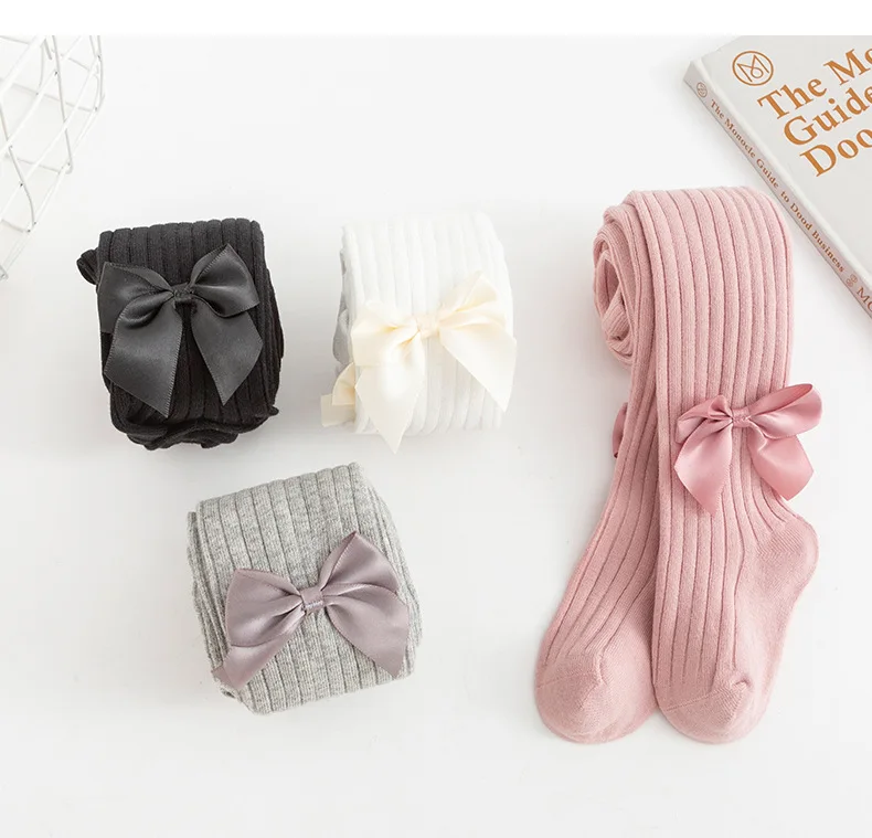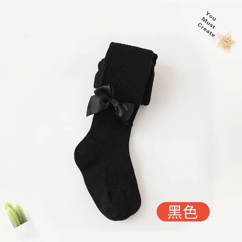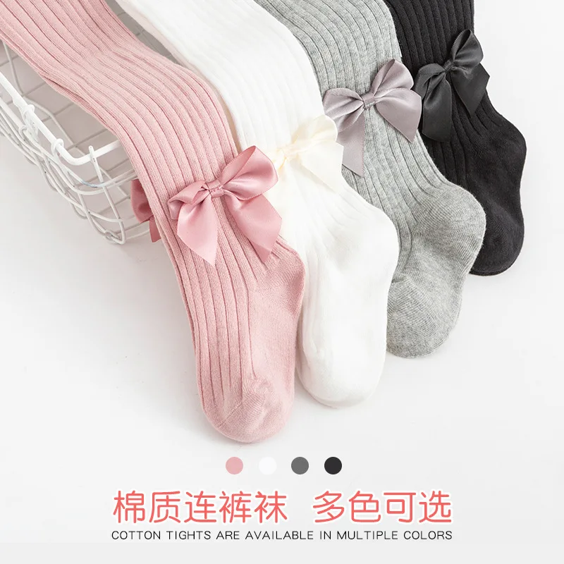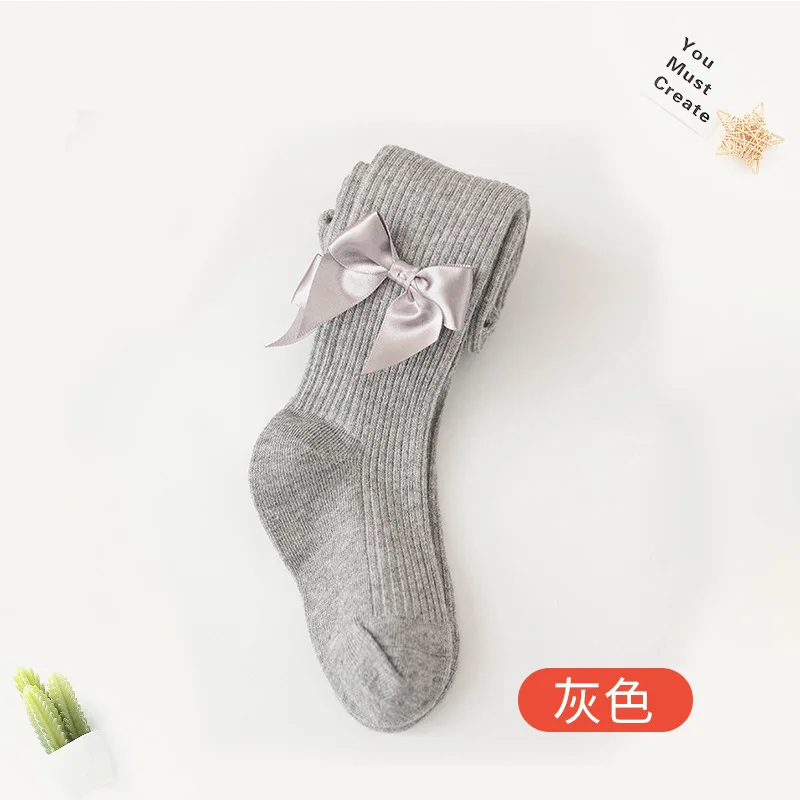 Осенне-зимние чулки для девочек колготки с большим бантом для малыш...