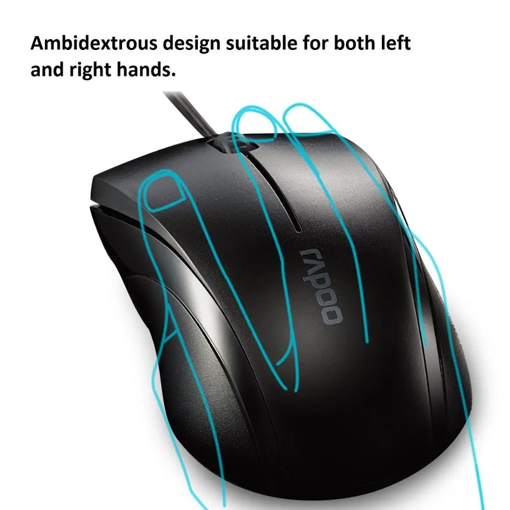 Проводная USB оптическая Бесшумная мышь Rapoo N1600 с 3 кнопками, компьютерные мыши с 1000 DPI, совместимы с ПК, Mac, настольным ПК и ноутбуком
