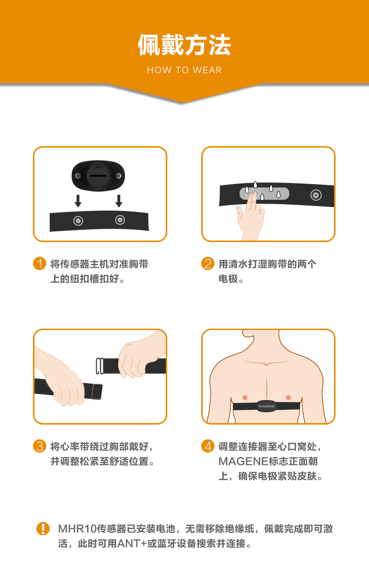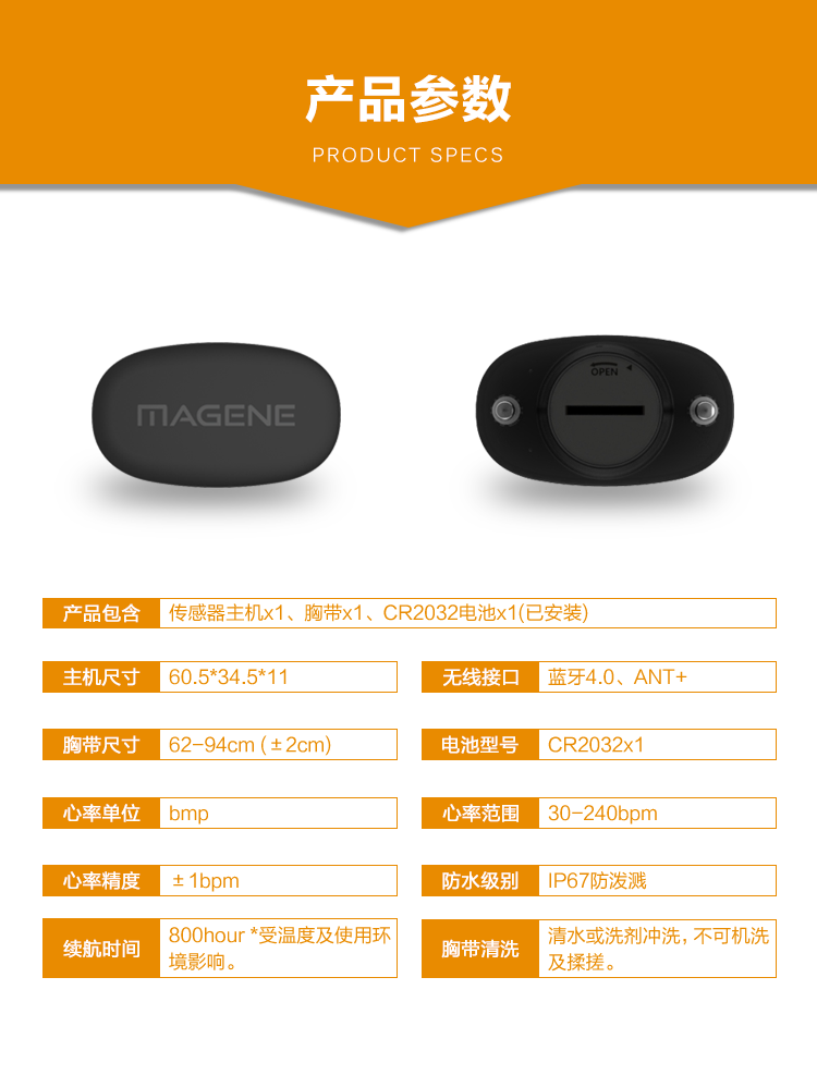 Magene HRM-H64 двойной режим ANT + и Bluetooth 4,0 датчик сердечного ритма с нагрудным ремешком