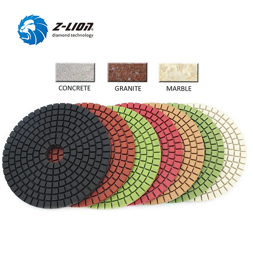 Z-LION 8 шт. 4 дюйма Алмазные полировальные колодки, бетонный шлифовальный диск, полимерная Гибкая Накладка для пола с резиновым задником, алмазный инструмент