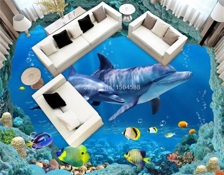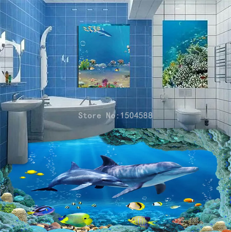 Пользовательская фотография настенная бумага 3D стерео подводный мир дельфины 3D плитка фрески ванная комната Гостиная водонепроницаемая ПВХ настенная бумага s