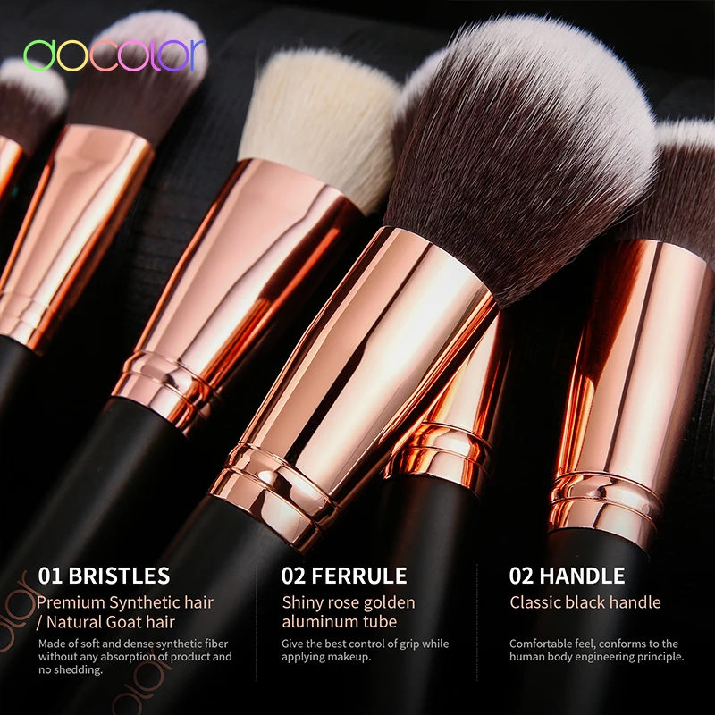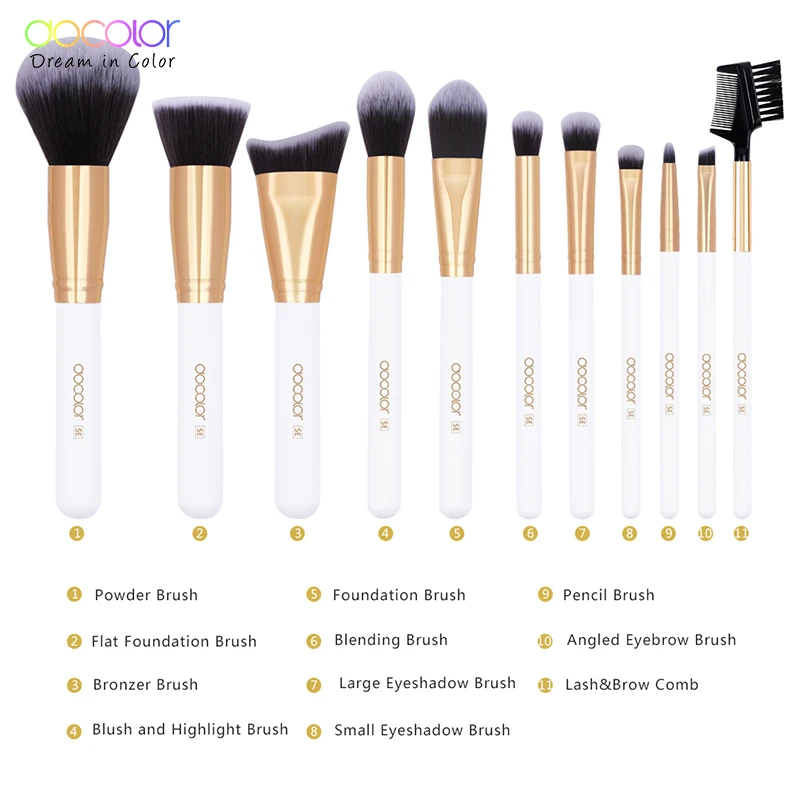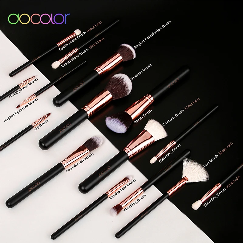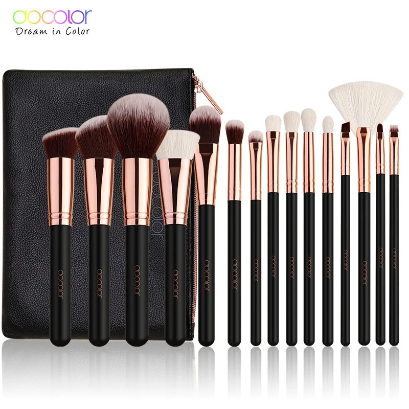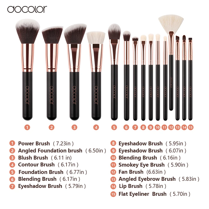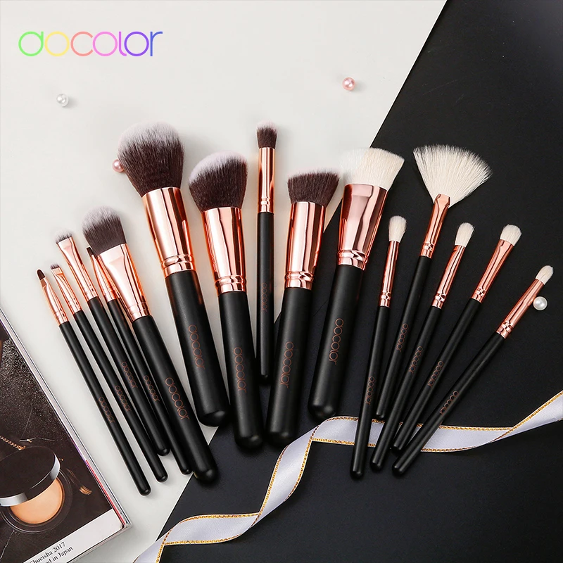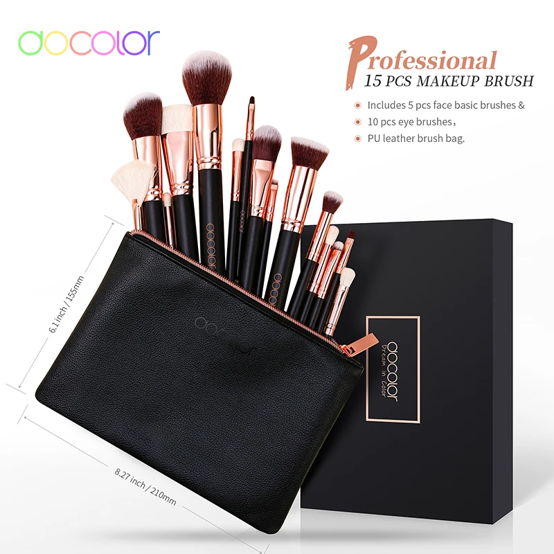 Docolor 11 15шт Кисти для макияжа Пудра Тени для век Макияж Кисти Набор косметических кисточек Мягкие синтетические волосы