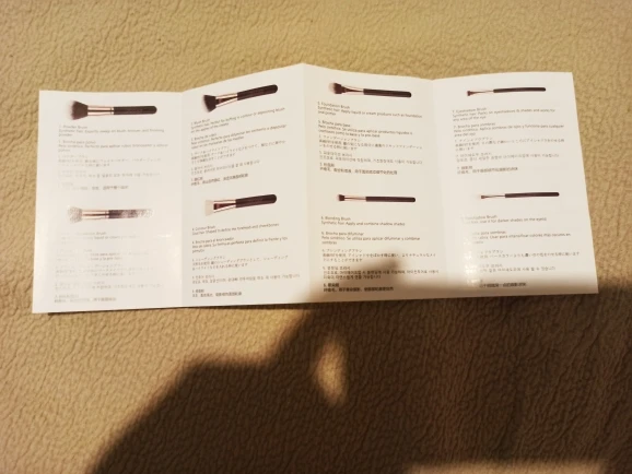 Я получил товар в течение двух дней, потому что я выбрал доставку из Испании и очень доволен, потому что он прибыл с его косметической сумкой, чтобы сохранить кисти. Как предлагается в Интернете. Предоставьте инструкции, которые объяснили, для чего нужна каждая кисть.