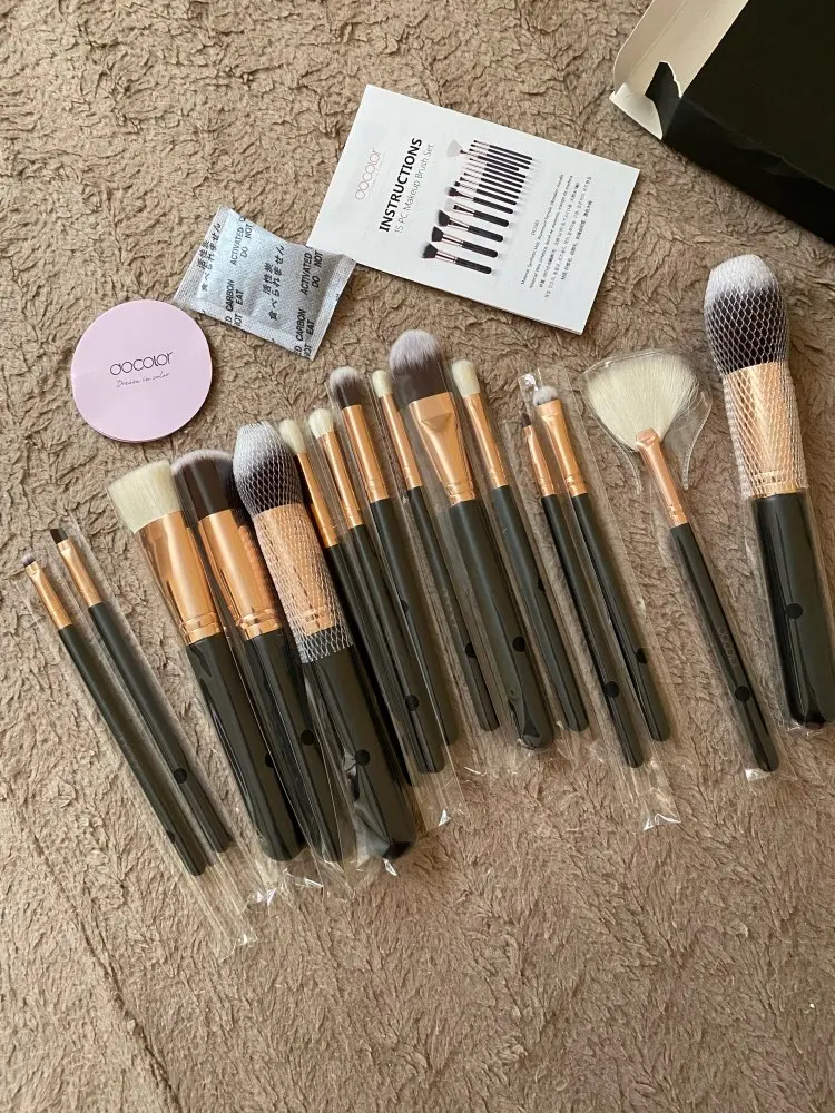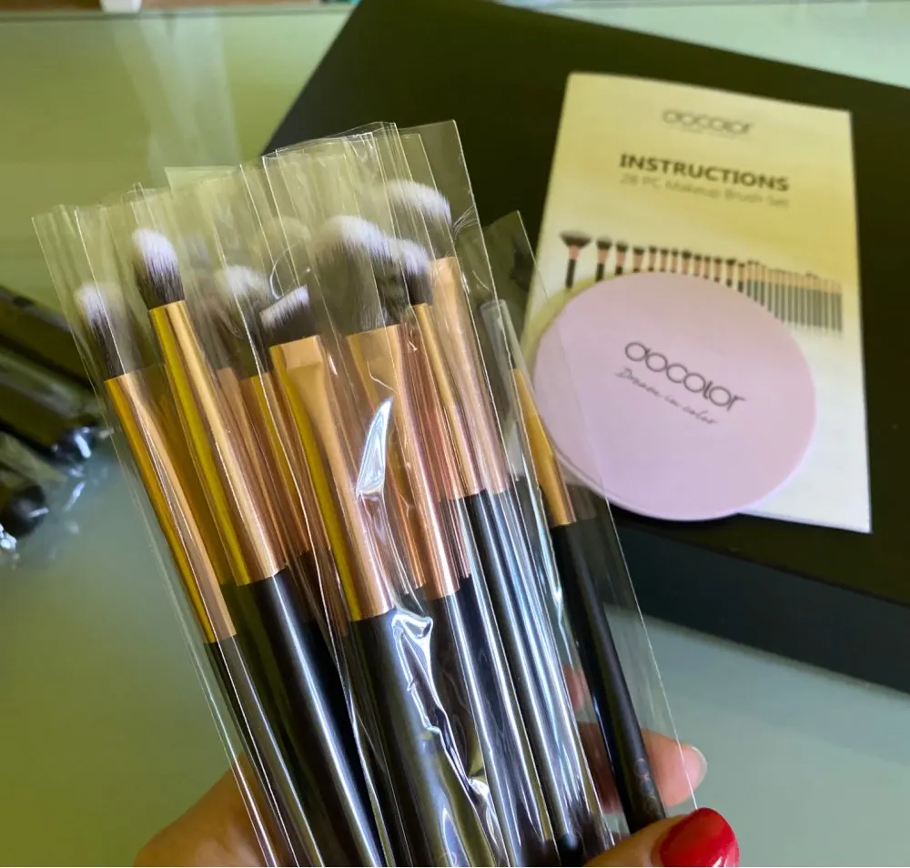 Все подошло очень хорошо упаковано и в хорошем состоянии! Доставка была доставлена очень быстро в мою страну, и не было щёток, на самом деле набор из 28 шт. очень полный, и кисти отличного качества, Я уже использовал их немного (Вот почему фотографии выглядят немного окрашенными), и они не дали проблему! Больше ничего не сказать, Они идеальны! Мне они понравились! <3