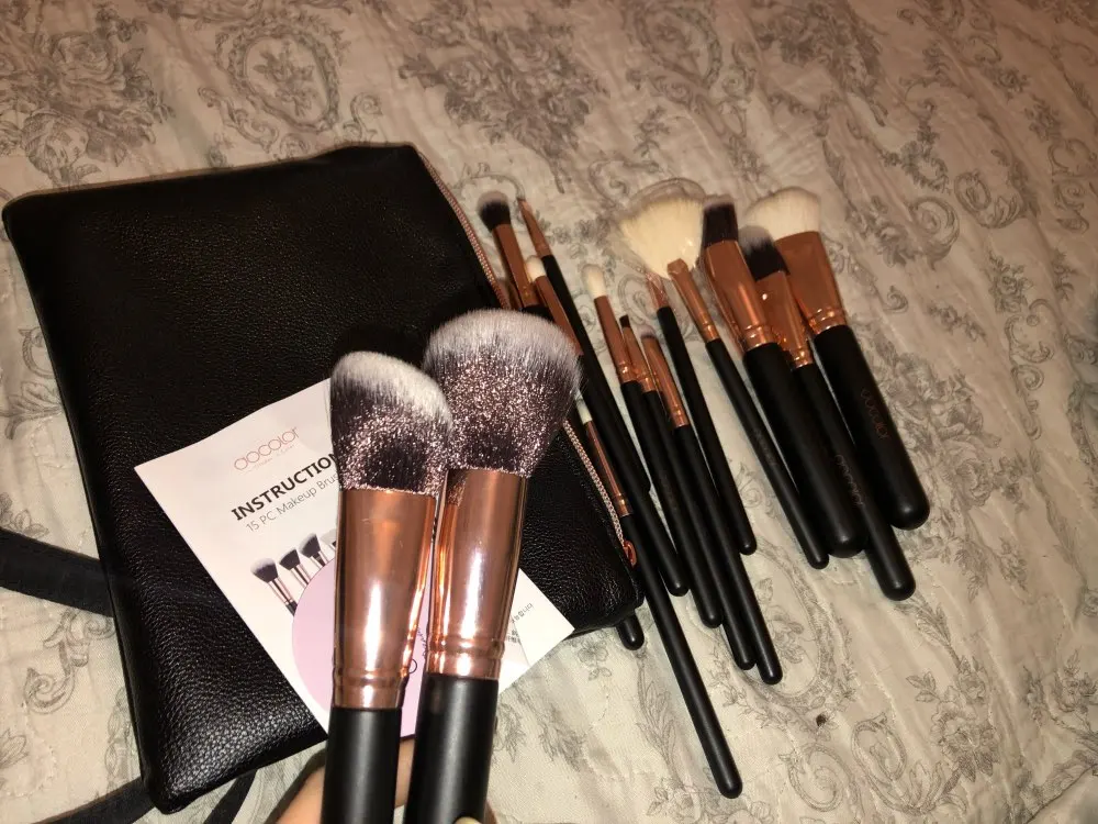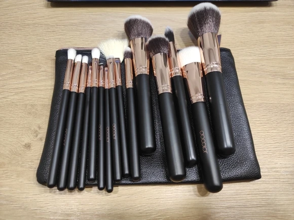 Размер кистей немного отличается от картинки... Пришли все 15 кистей в комплекте с "косметичкой" небольшой для них. Запах от сумочки зловонно ужасный. Кисти достаточно хорошо набиты, густые (за исключением веера), волоски не выпадают, мягкие. Белые кисточки как заявлено на брошюре изготовлены из козы. Действительно, белые кисти пахнут козочкой. Несмотря на то что остальные кисти - синтетика к коже они довольно мягкие и приятные, не колятся. Были упакованы в коробочку и пупырчатую упаковку. Доставка из России , пришло достаточно быстро. Кисти ещё не пробовала мыть, насчёт мытья не знал как себя поведут. Итог : хорошо за цену 1300±