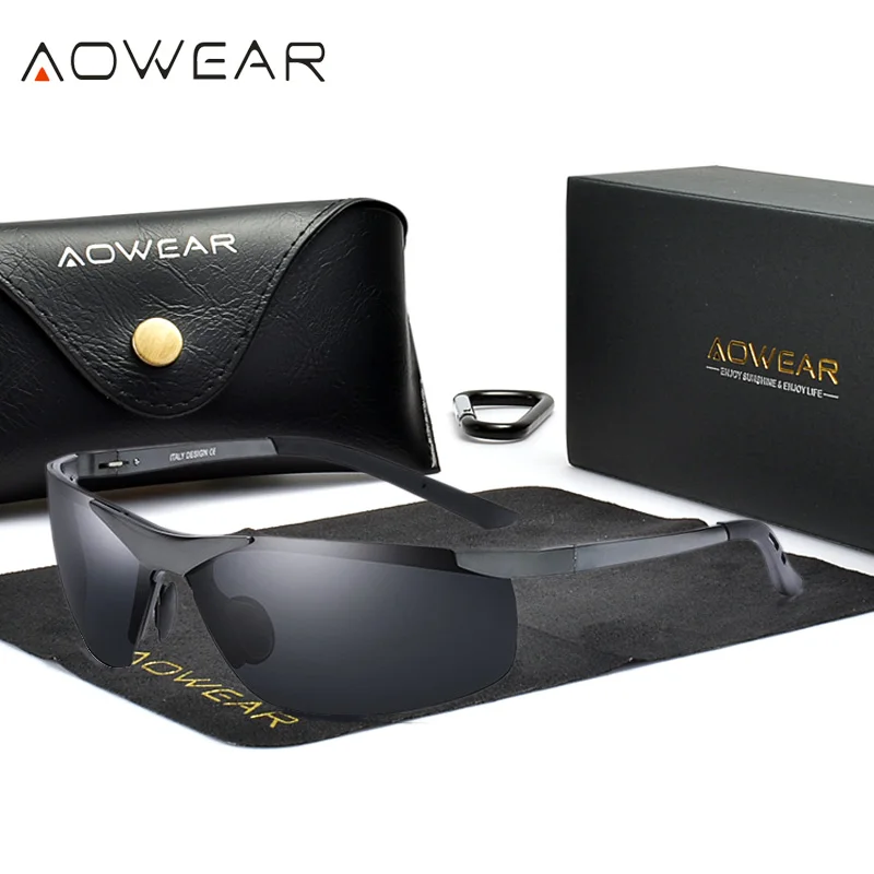Солнцезащитные очки AOWEAR мужские без оправы, роскошные поляризационные алюминиевые, для спорта на открытом воздухе, в стиле ретро, для вождения