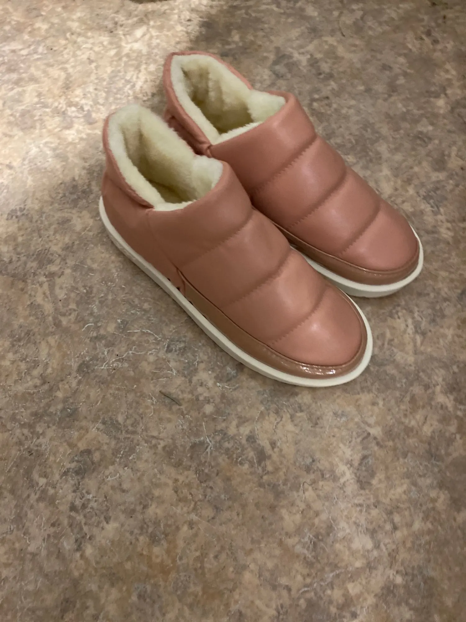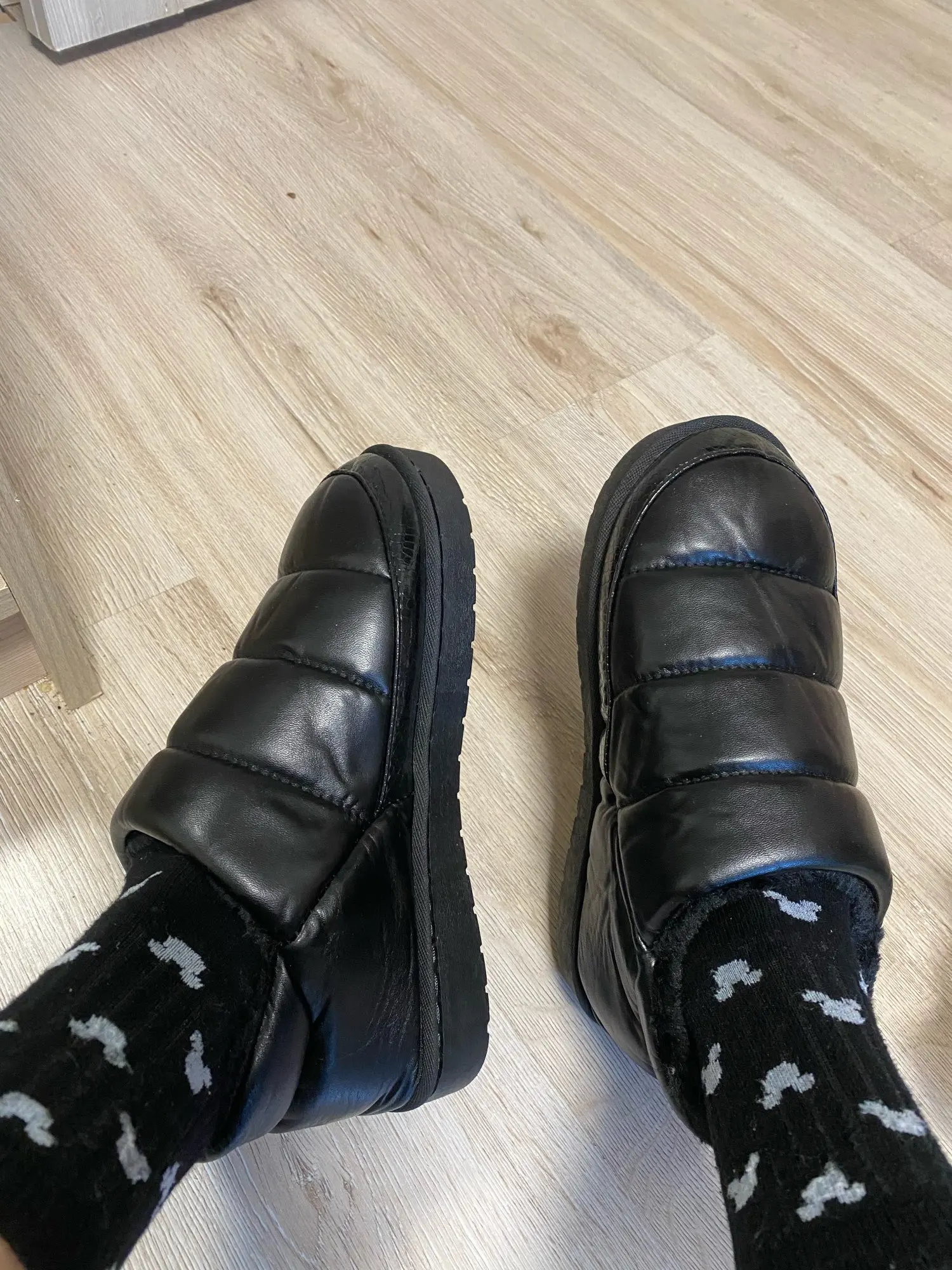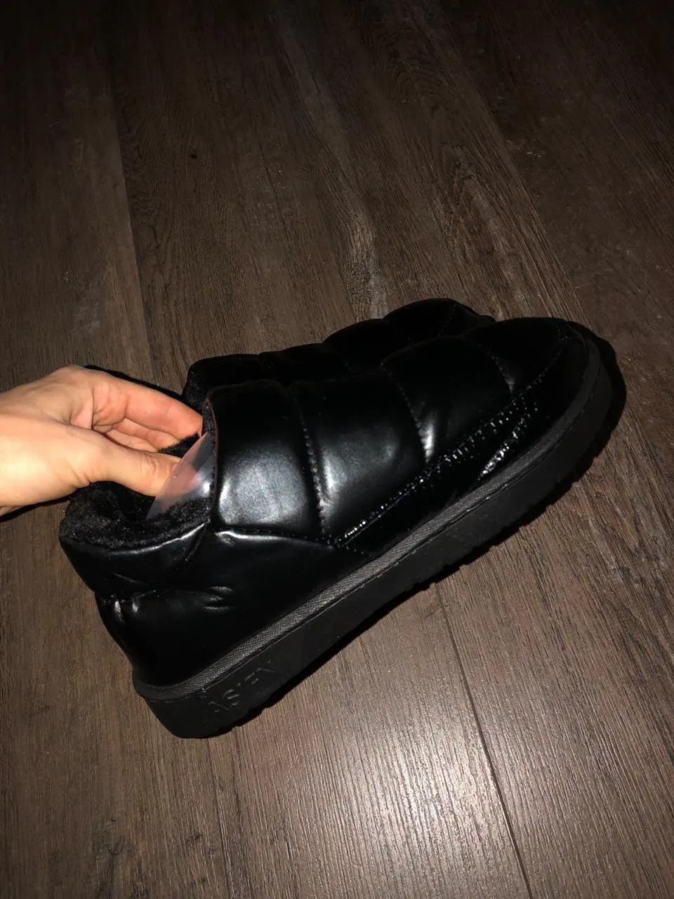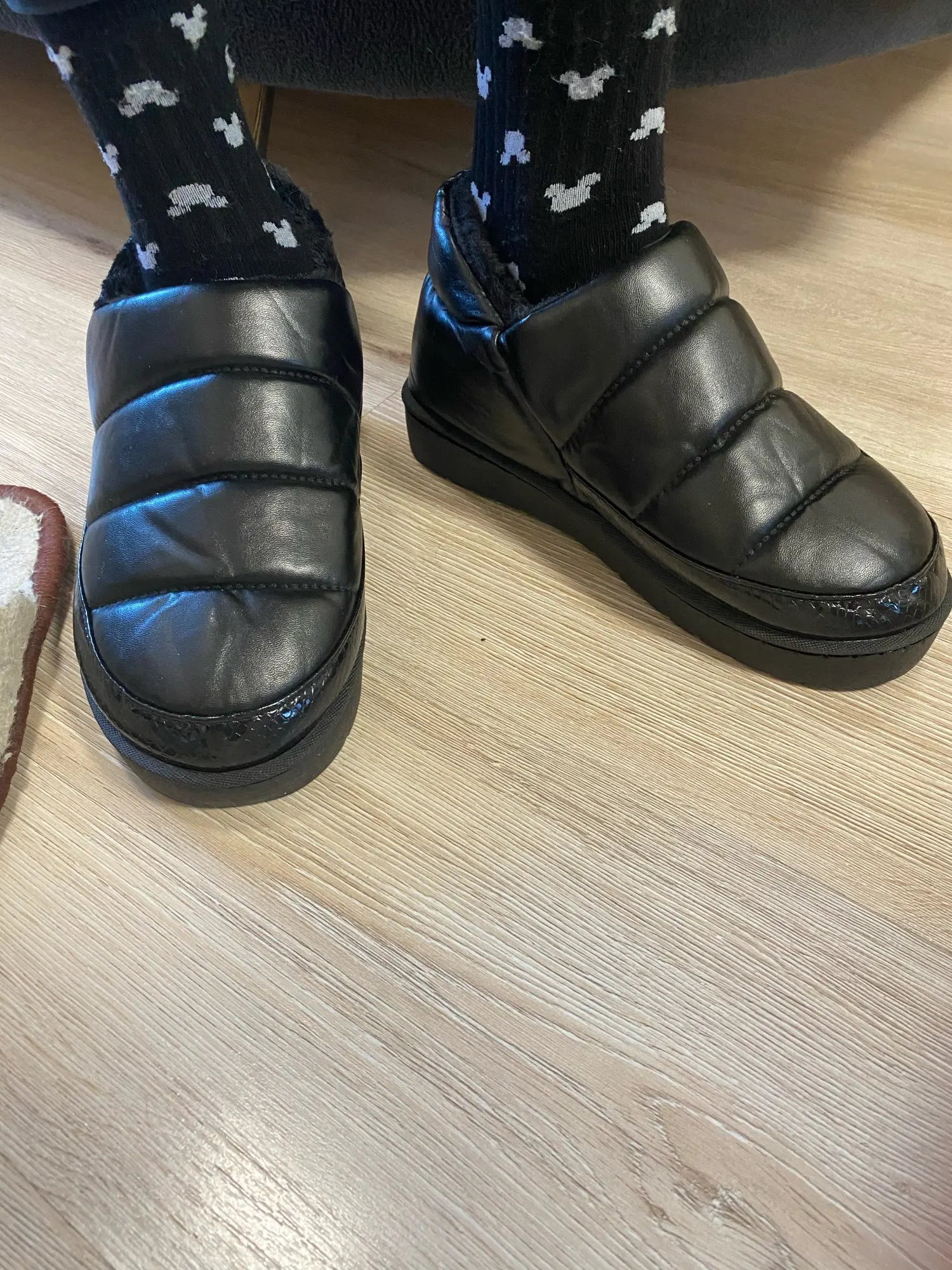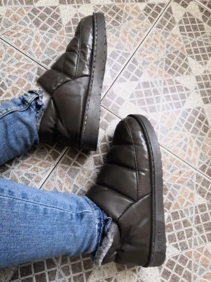 Они не сильно тёплые, но мягчайшие! Смотрится норм, не то что бы совсем уродские)))) по району гулять, или в магазин за продуктами. На стопу 23,5 см подошёл 8 размер. Пух внутри уляжется можно будет и плотнее носок надеть. Размер отлично подошёл, больше не нужно.