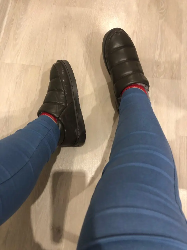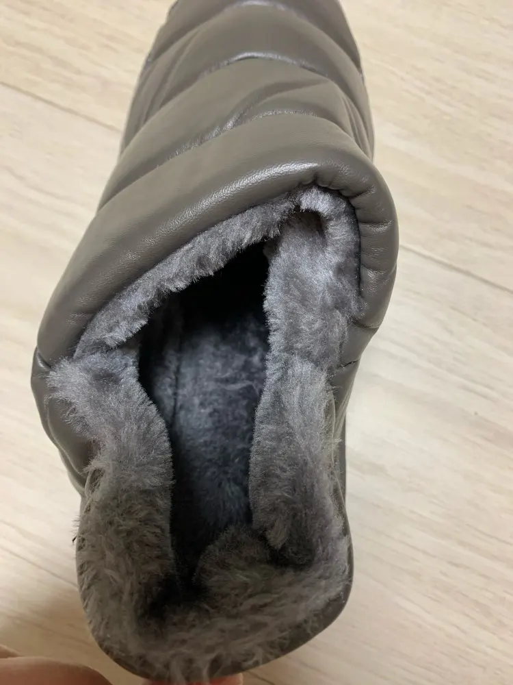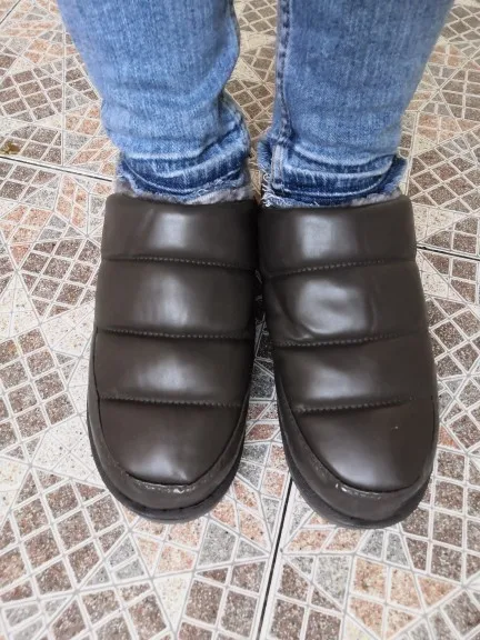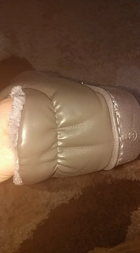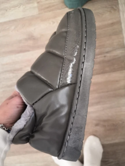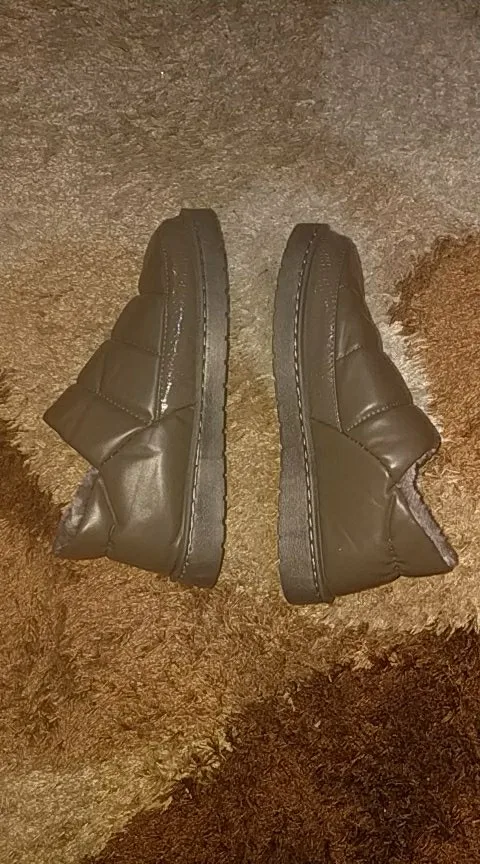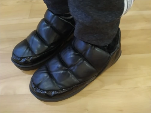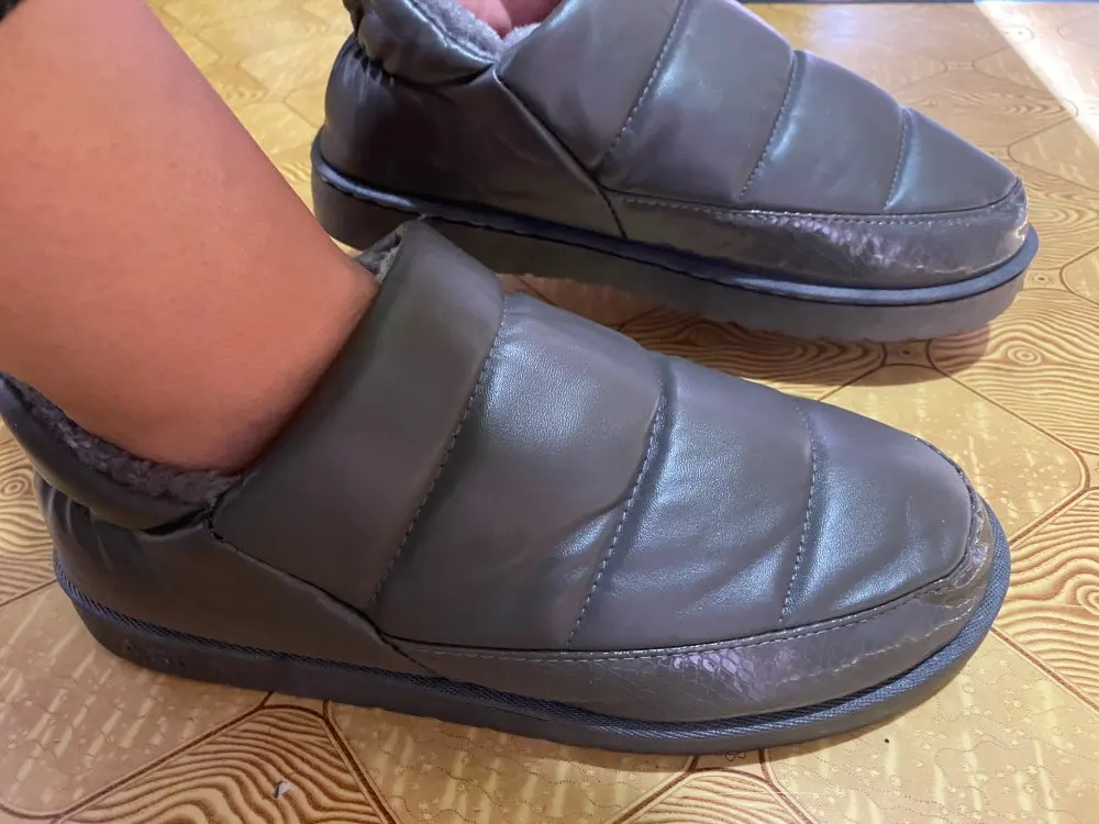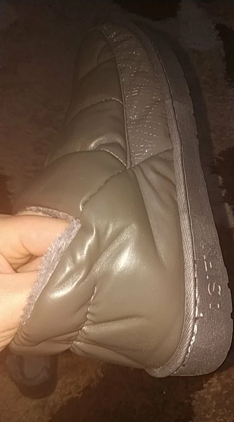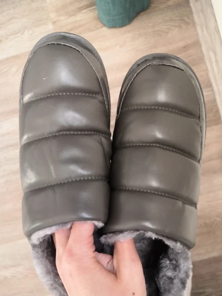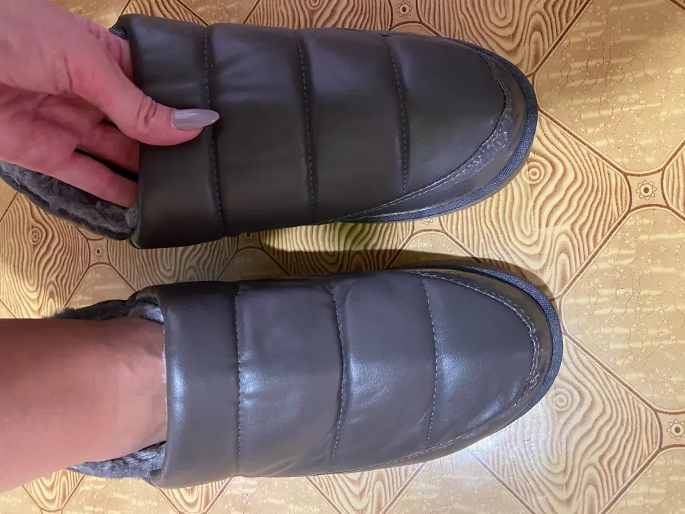 Очень вовремя пришли тапки-ботиночки. Дома холодно, хожу в них вместо тапочек, не нарадуюсь. Выполнены аккуратно, запаха нет, все, конечно, синтетическое, но тепло. Серый цвет, конечно, только у внутреннего меха, остальное скорее в шоколадом цвете. Но фото продавца передаёт корректно.
