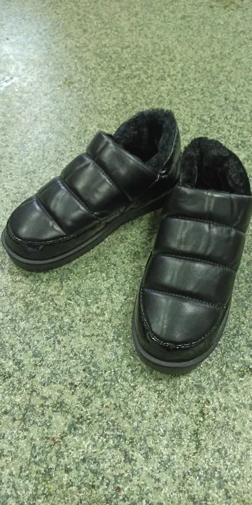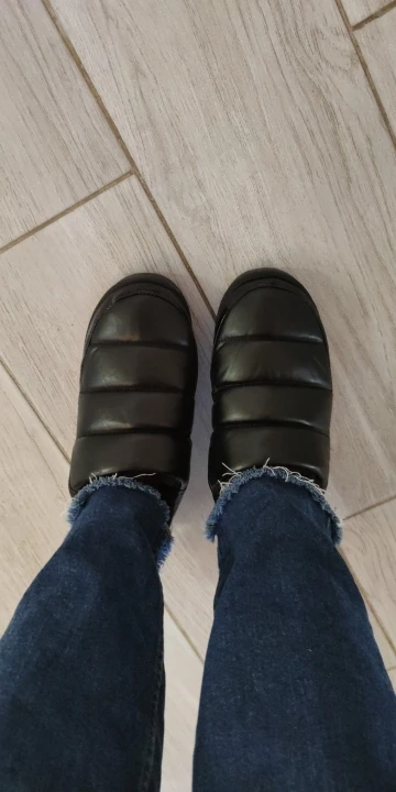 Быстрая доставка. Приехали плотно упакованные, как результат - мятые, но расправились в течение нескольких дней. На русский размер 38 хорошо, плотно сел 8, если совсем свободно хочется, то лучше 8,5 брать, но нога будет болтаться. Тёплые, удобные, ходишь по улице, как в тапочках. Вроде не промокают, но «влагу» от реагентов кажется впитывают. В целом, очень довольна покупкой