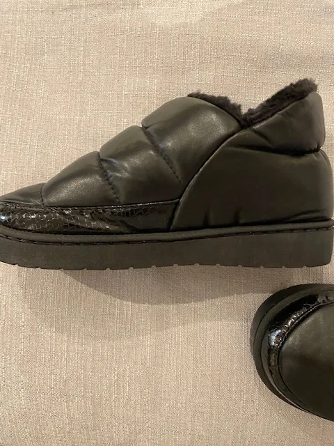 смешные боты. С моим размером ноги смотрятся огромными. Покупала для загородного дома, чтоб быстро надеть и снять. В общем, довольна. теплые. доставка около 3 недель