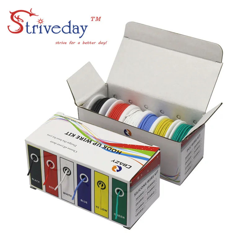 60 метров/коробка 30 AWG 10 метров каждого цвета гибкий силиконовый резиновый провод
