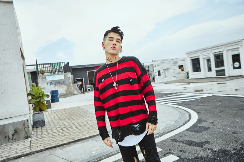 Мужской хлопковый свитер GMANCL, с дырками, в винтажном стиле, свободный, Повседневный, осенний, два цвета