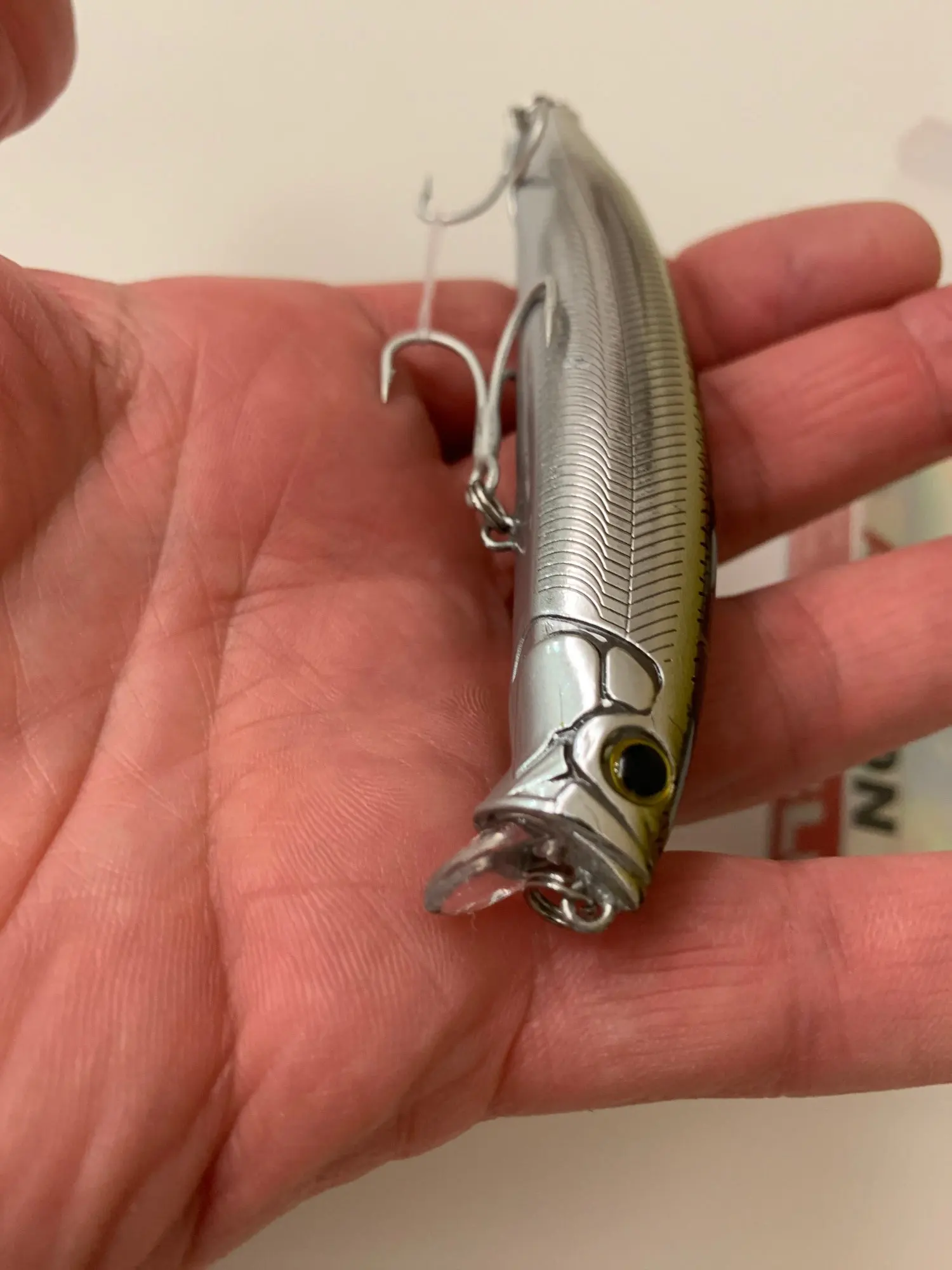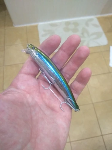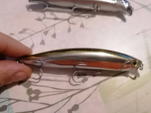 Что ждал,то и получил,очень доволен...очень быстрая доставка!!! у воблера не обычная насечка,что создаёт ощущение объёмной покраски...медленно всплывает,крюки-морские!Продавцу-СПАСИБО!