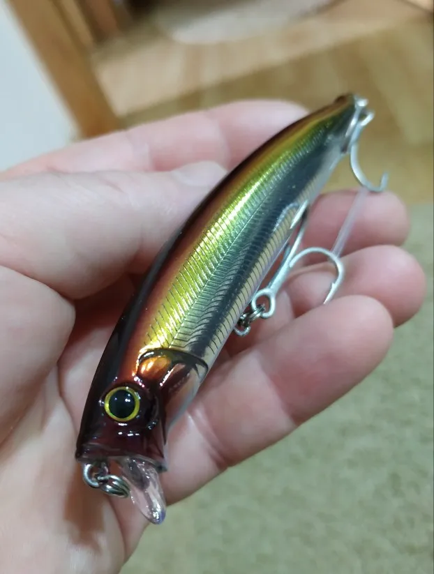 Хорошие приманки с жесткой отделкой. Немного не высыхает на крючках после нескольких прогулок. Обновленные кольца и крючки готовы к большим Басам. Хорошо работает. Магнит внутри немного сильный, так как один шариковый подшипник остается с магнитом при литье.