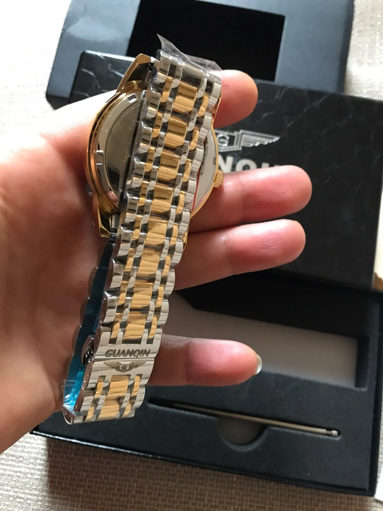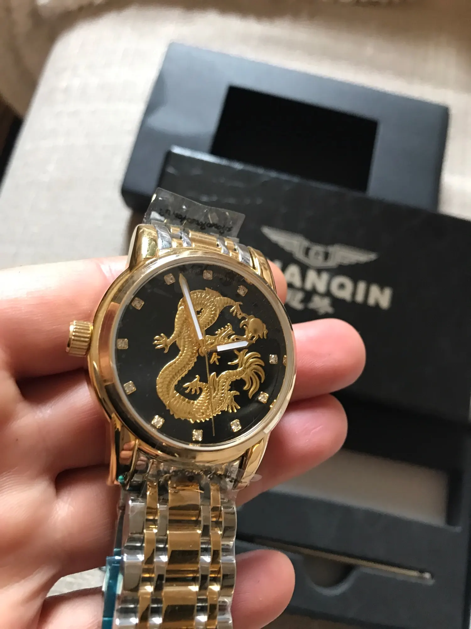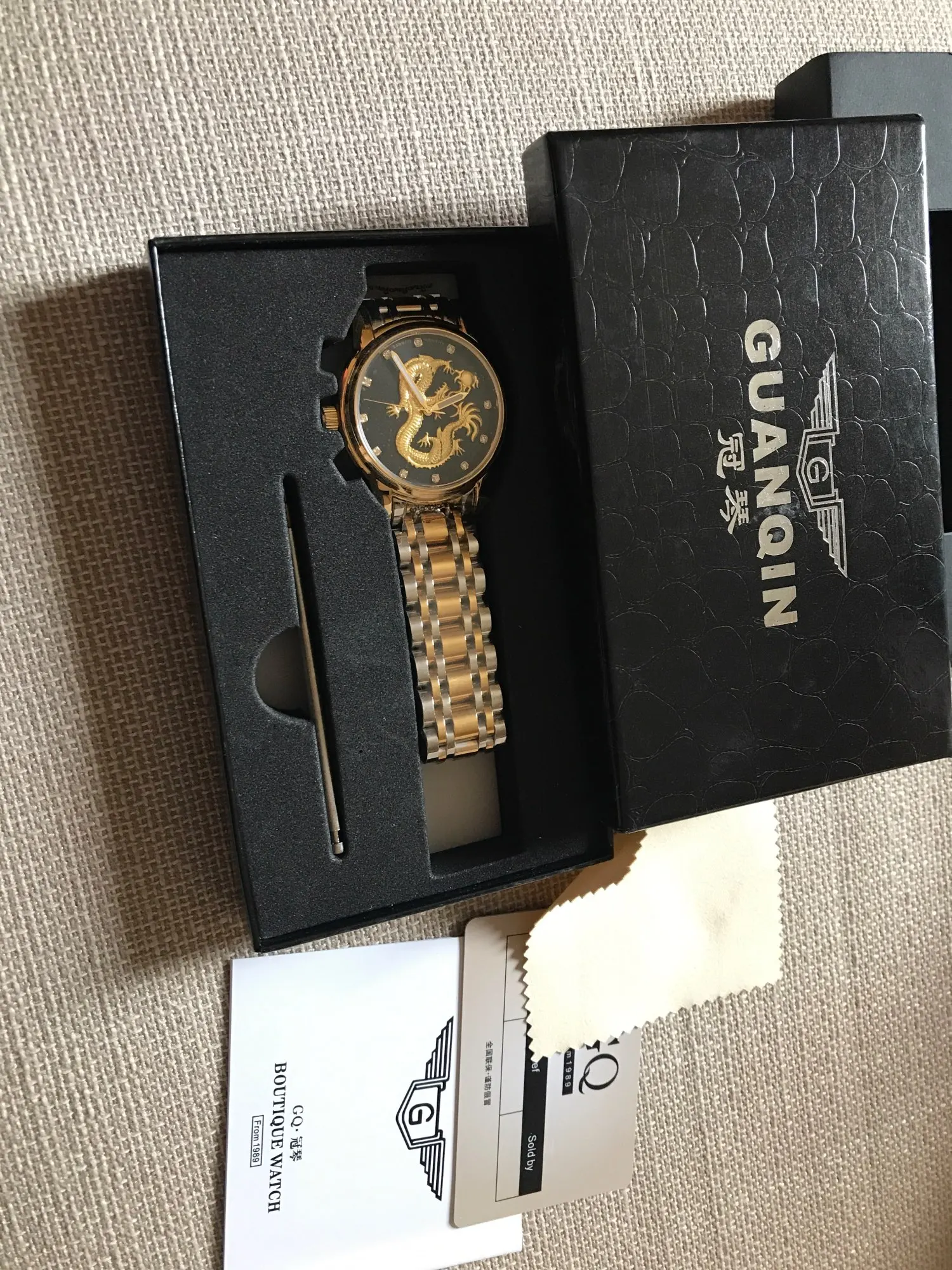 Натуральная GUANQIN Элитный бренд новый золотой дракон Скульптура Кварцевые часы Мужчины Нержавеющая сталь Водонепроницаемый наручные часы Relogio Masculino