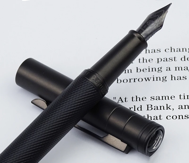 Черная металлическая перьевая ручка Hongdian, титановая черная Изысканная перьевая ручка с красивой текстурой дерева, деловые и офисные школьные письменные принадлежности