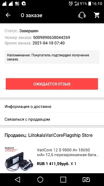 Емкость аккумулятора: 9800 мАч (9.8Ah)