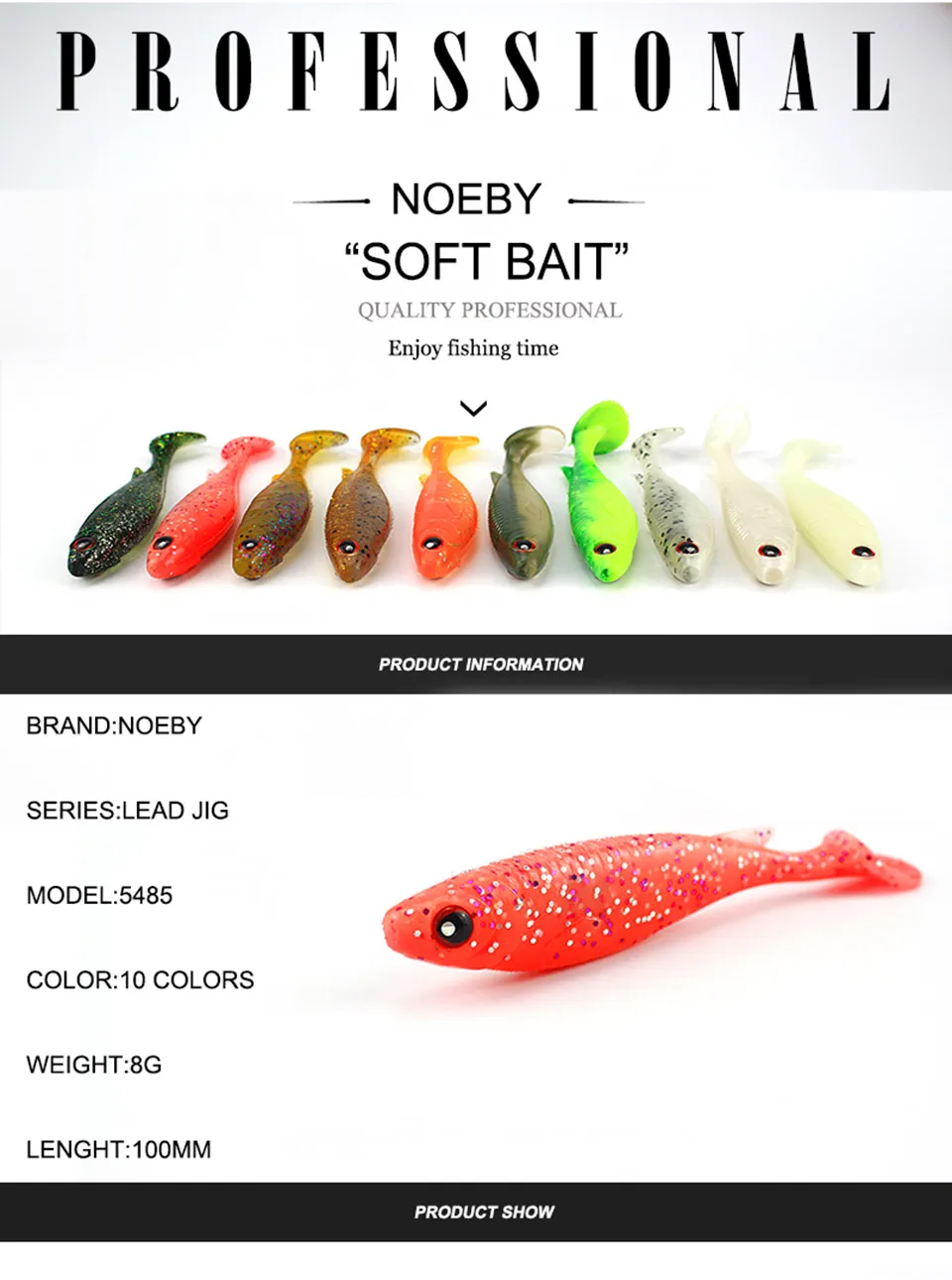 NOEBY 4 шт.лот Мягкая приманка 100 мм8 г для рыболовного червя, свинцовая Мормышка, Т-образный хвост, рыболовная снасть, рыболовные приманки, свимбейт с объемными глазами, Мягкая приманка
