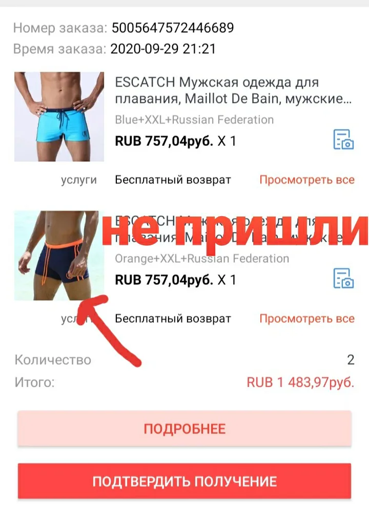 Плавки пришли довольно быстро. Качество довольно неплохое. Не хватало только кольца на завязке (видно на фото), я открыл спор на возврат 3$ из 9$. продавец быстро согласился. Поэтому описание товара на 4, общение с продавцом и доставка на 5