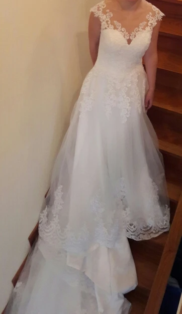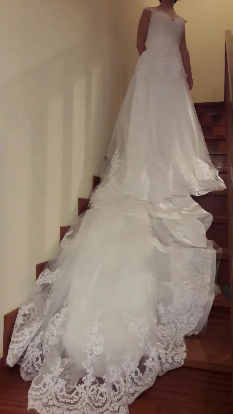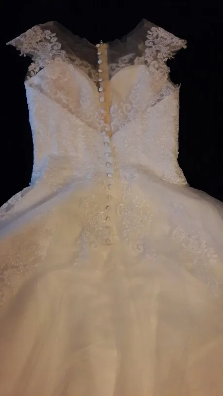 Платье соответствует описанию или даже лучше. Качество превосходное и превосходное. Я прибыл очень быстро, и продавец сразу отвечает на все сомнения. Верхняя часть имеет стержни внутри для придания жесткости телу платья. Также в комплект входит наполнитель для груди. Скобы, подтяжки и рисунки сзади идеально симметричны. Тюль сзади очень мягкий, телесный и невидимый, когда он помещается на коже. Юбка включает внешний слой тюля с пришитой отделкой, идентичной фотографиям продавца. Ниже этого слоя прилагается 2 слоя тюля, чтобы придать ему объем и внутренний слой белого атласа, который закончен с другим слоем внутренней подкладки. Платье безупречное, лучше, чем я ожидала. Размеры-именно то, что я сказал продавцу. Я также подал заявку на длинное платье с хвостом, и продавец сделал это без проблем и точно так же, как и хотел. Я рекомендую этого продавца на 100%.